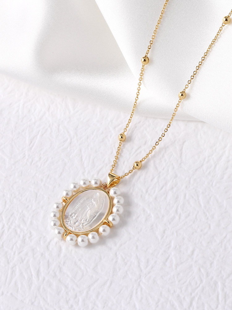 AS jewelry popular Virgin Mary pendant necklace female pearl shell clavicle chain nkz69