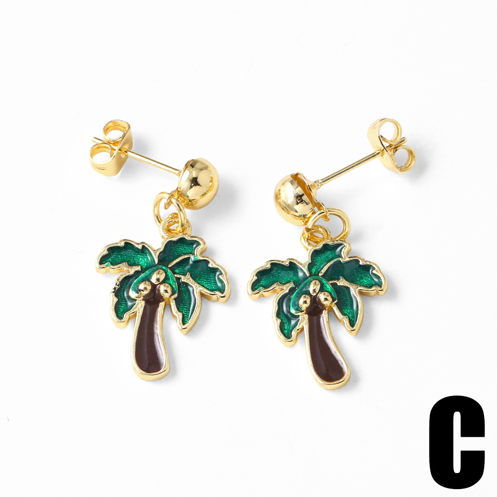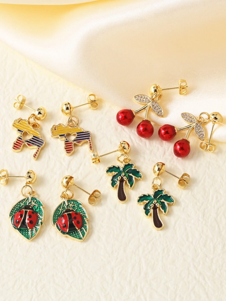 AS jewelry retro copper plated real gold cherry coconut tree pendant earrings earrings female erq31