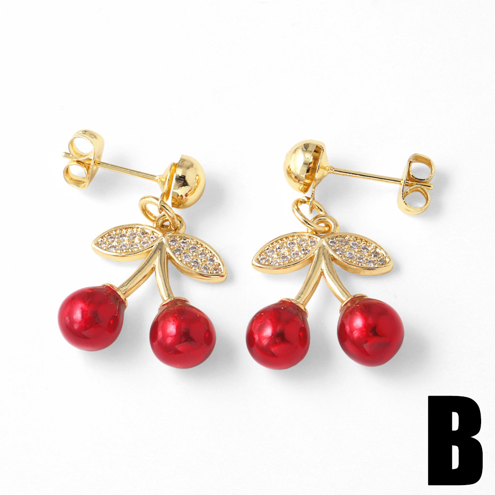 AS jewelry European and American new hot selling fruit cherry copper plated 18k gold earrings earrings female ers28 ring