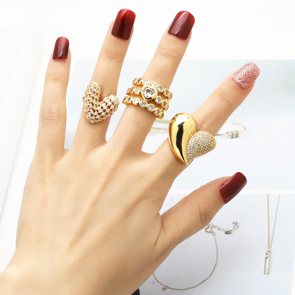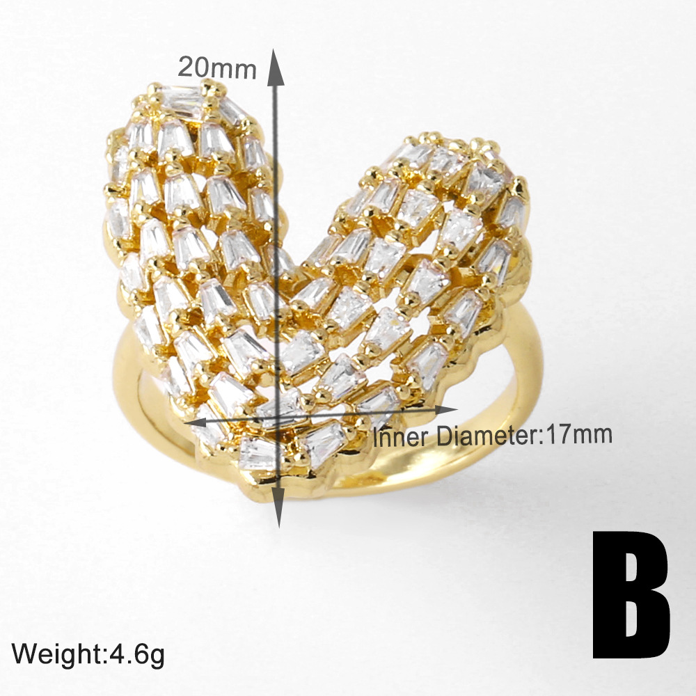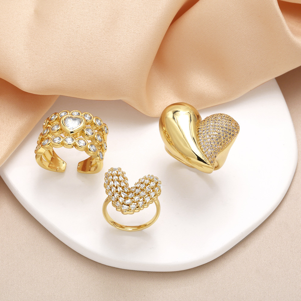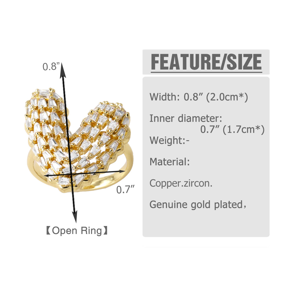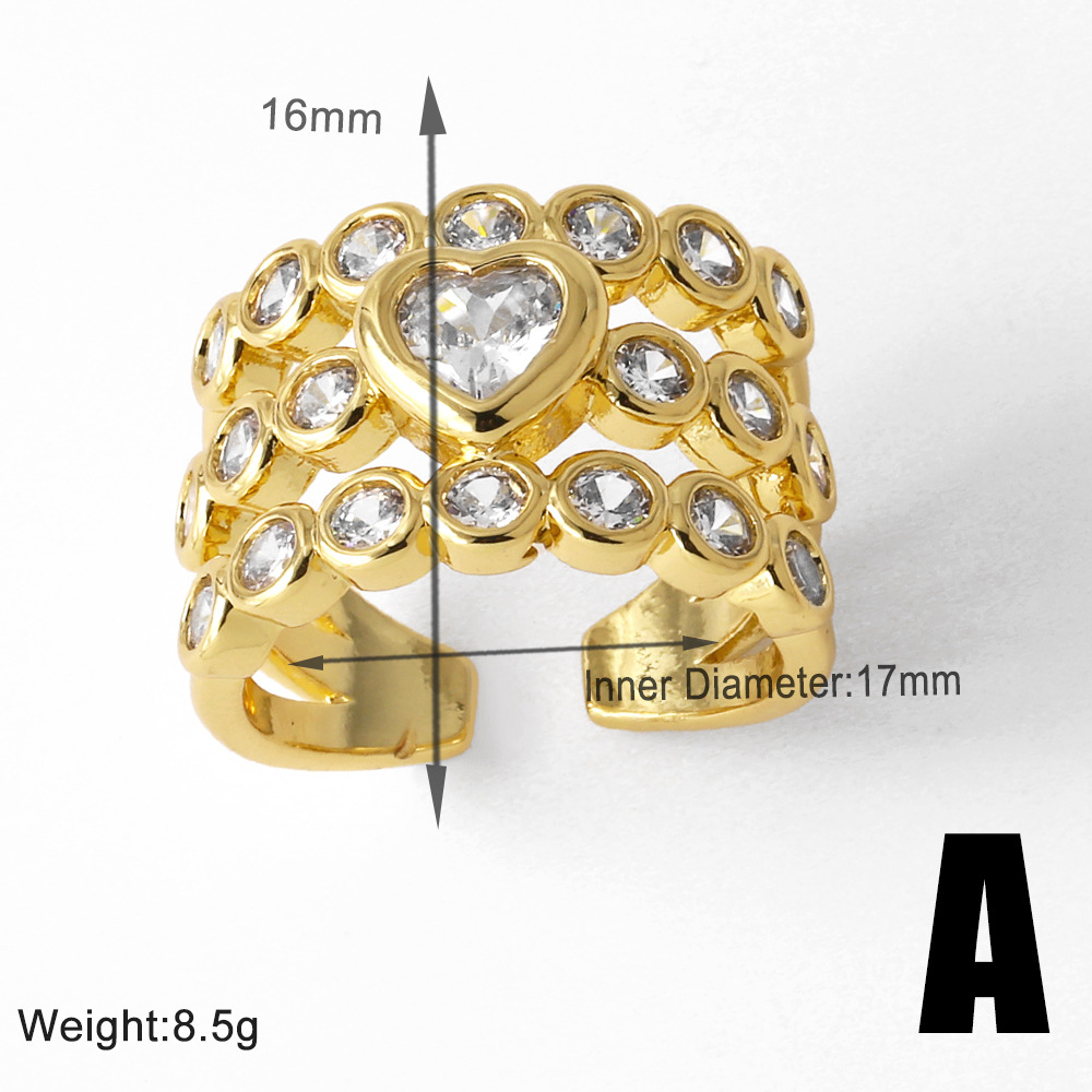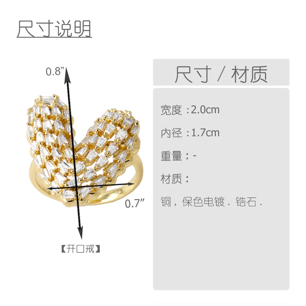 AS jewelry ring new full zircon love ring female copper plated 18k gold double layer open ring rik73