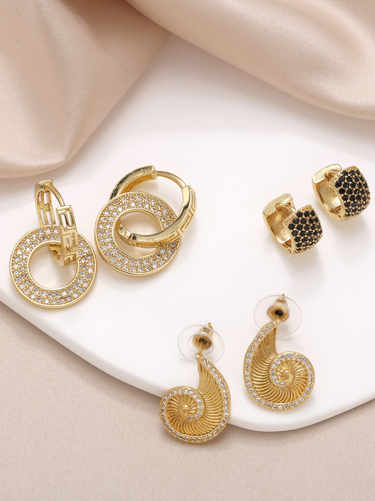 AS jewelry round C-shaped earrings for women copper plated real gold inlaid zircon earrings era123