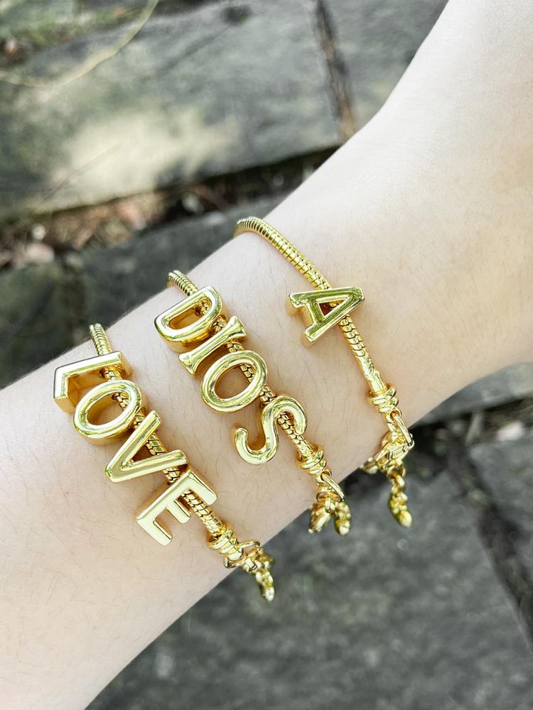 AS jewelry shopee hot selling 26 English letter bracelet glossy gold-plated DIY hand jewelry bre33