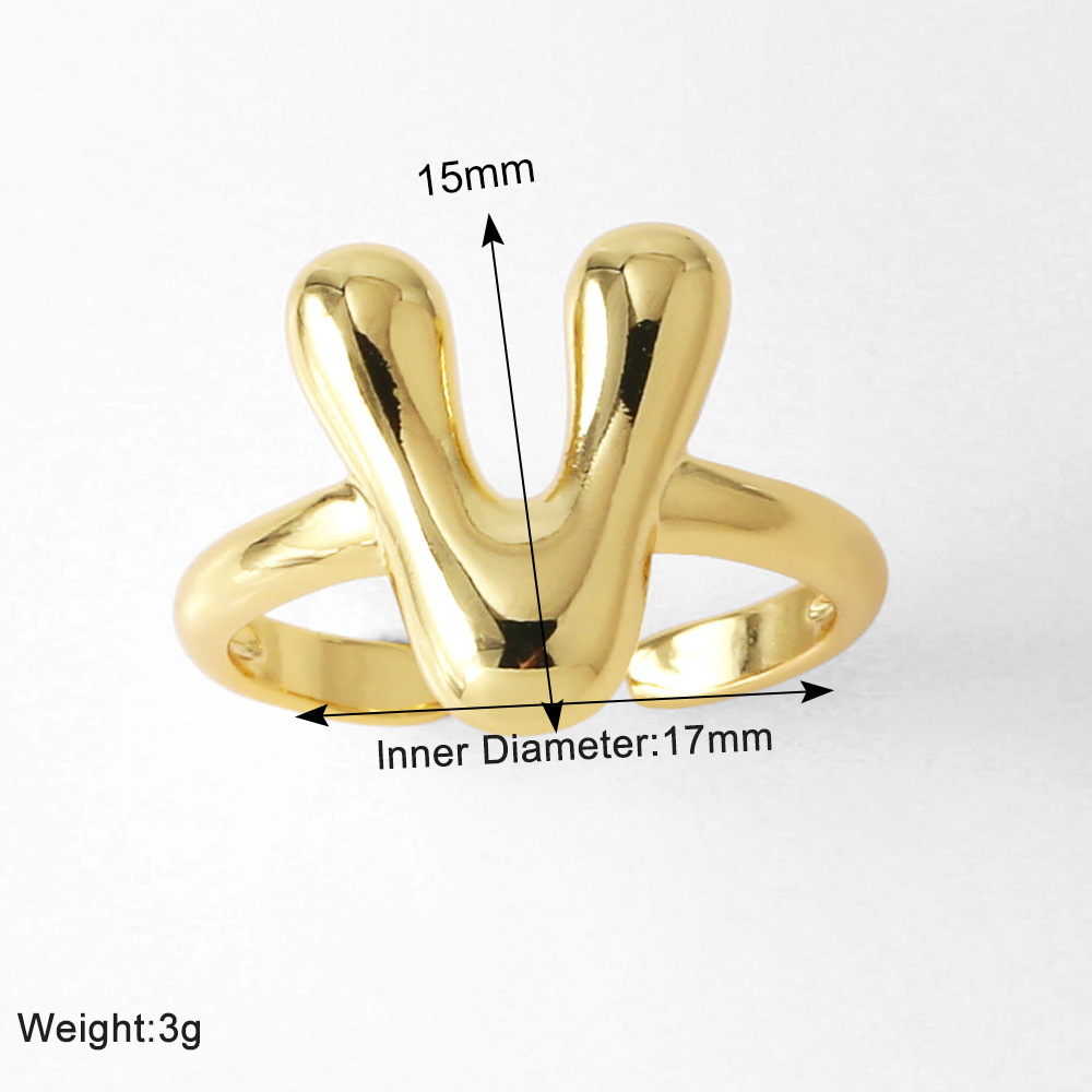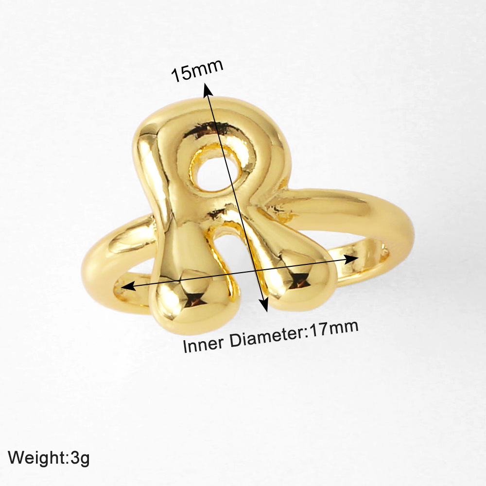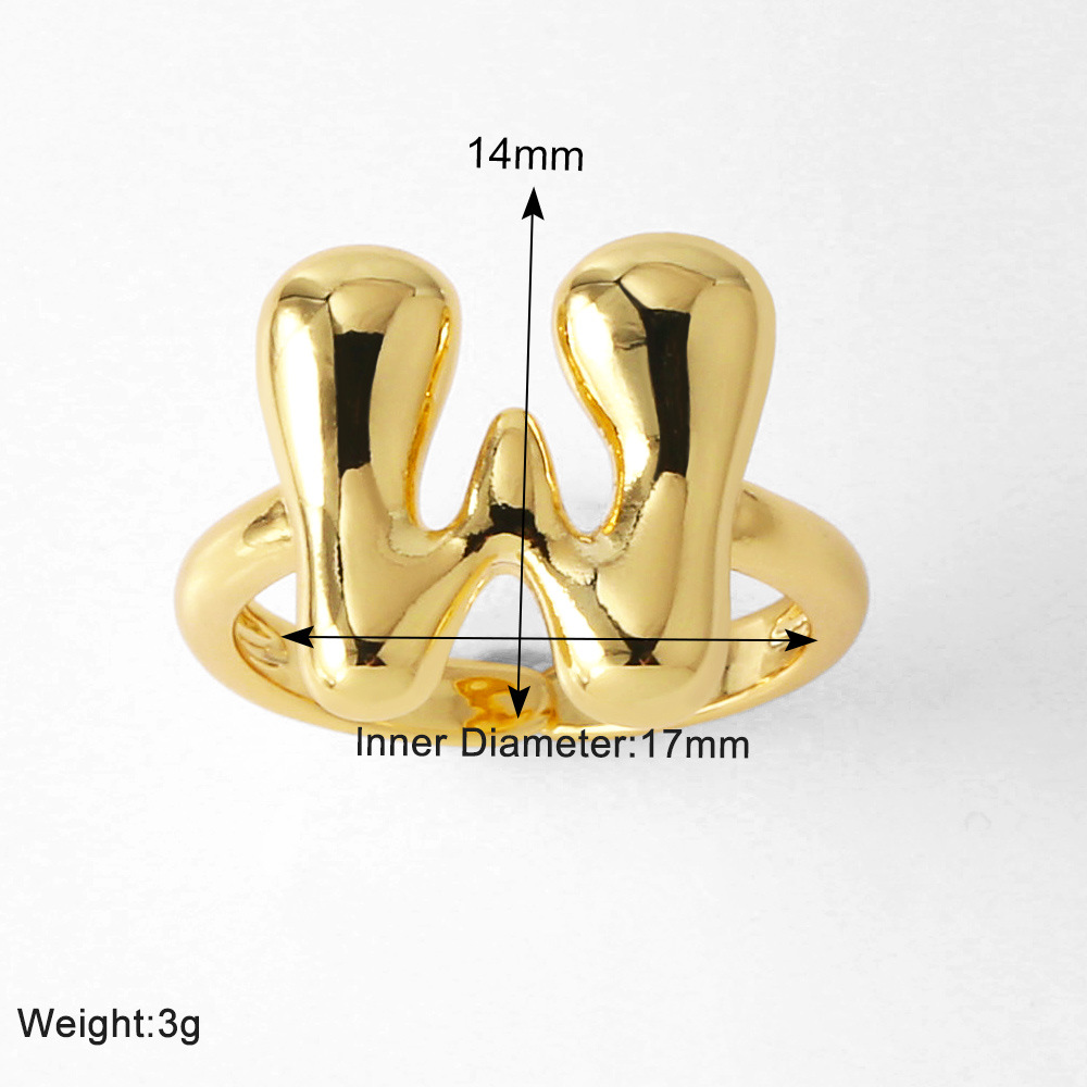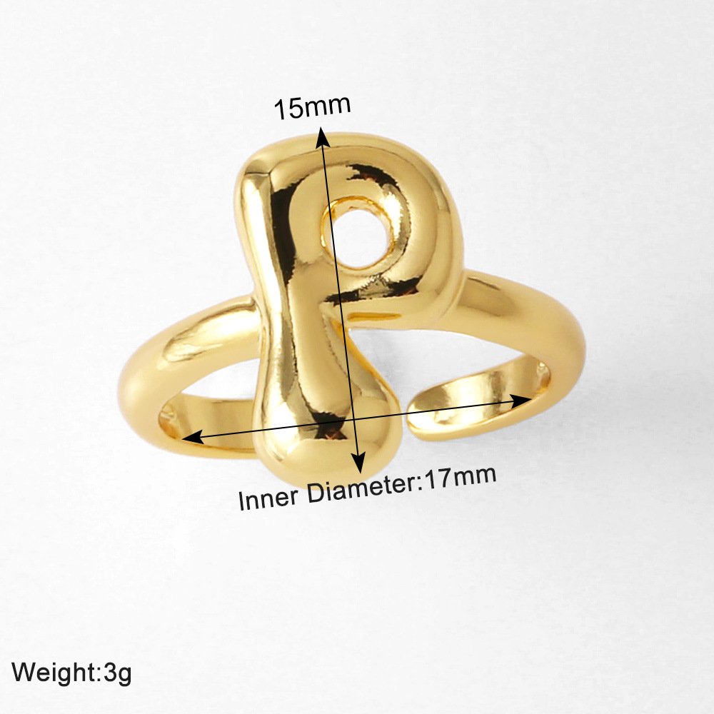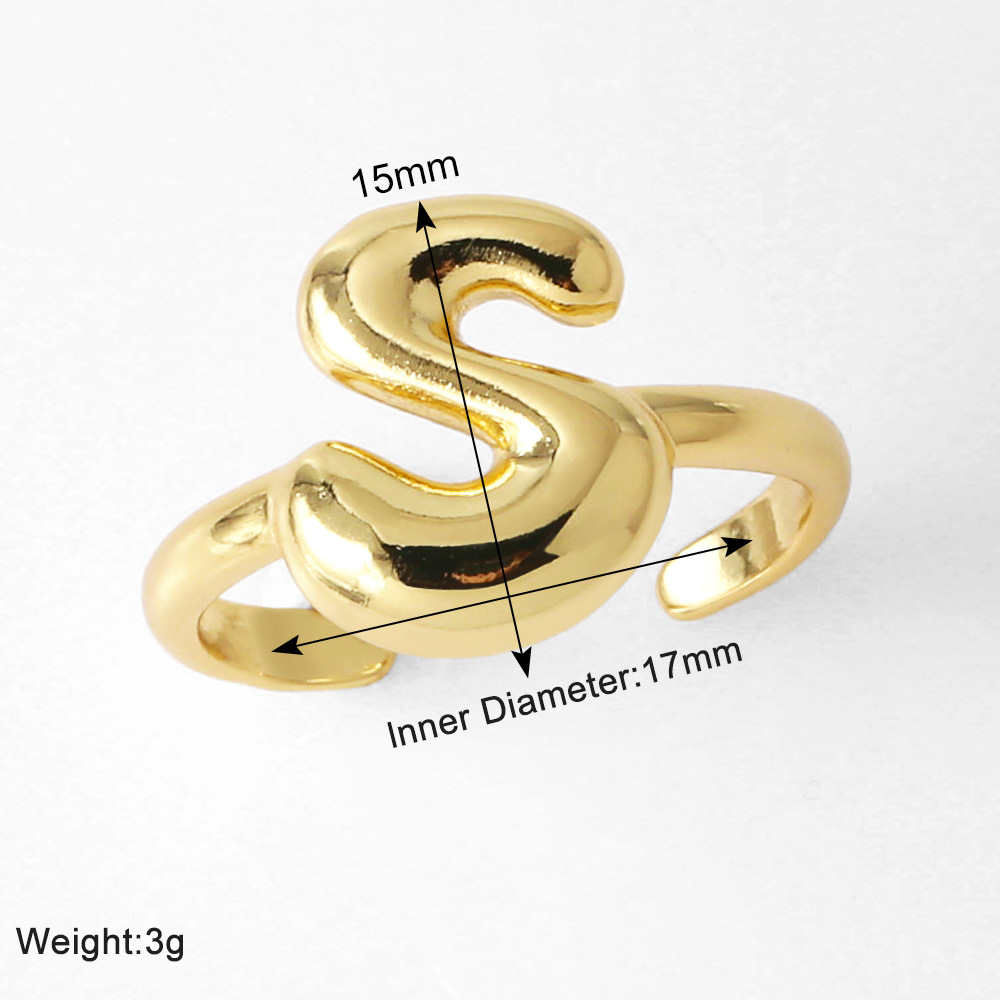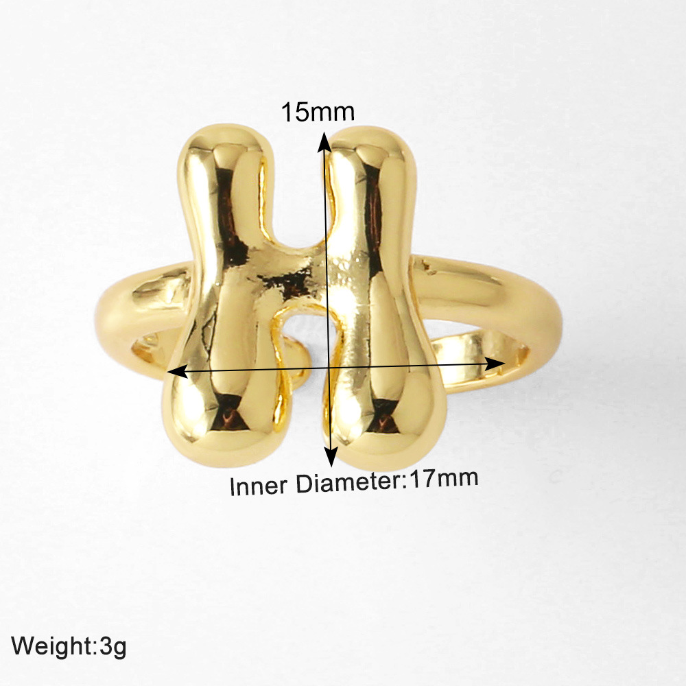 AS jewelry smooth 26 English letters ring female copper plated real gold open ring rih04