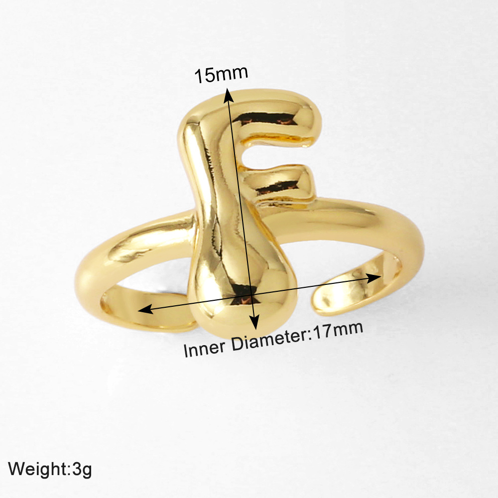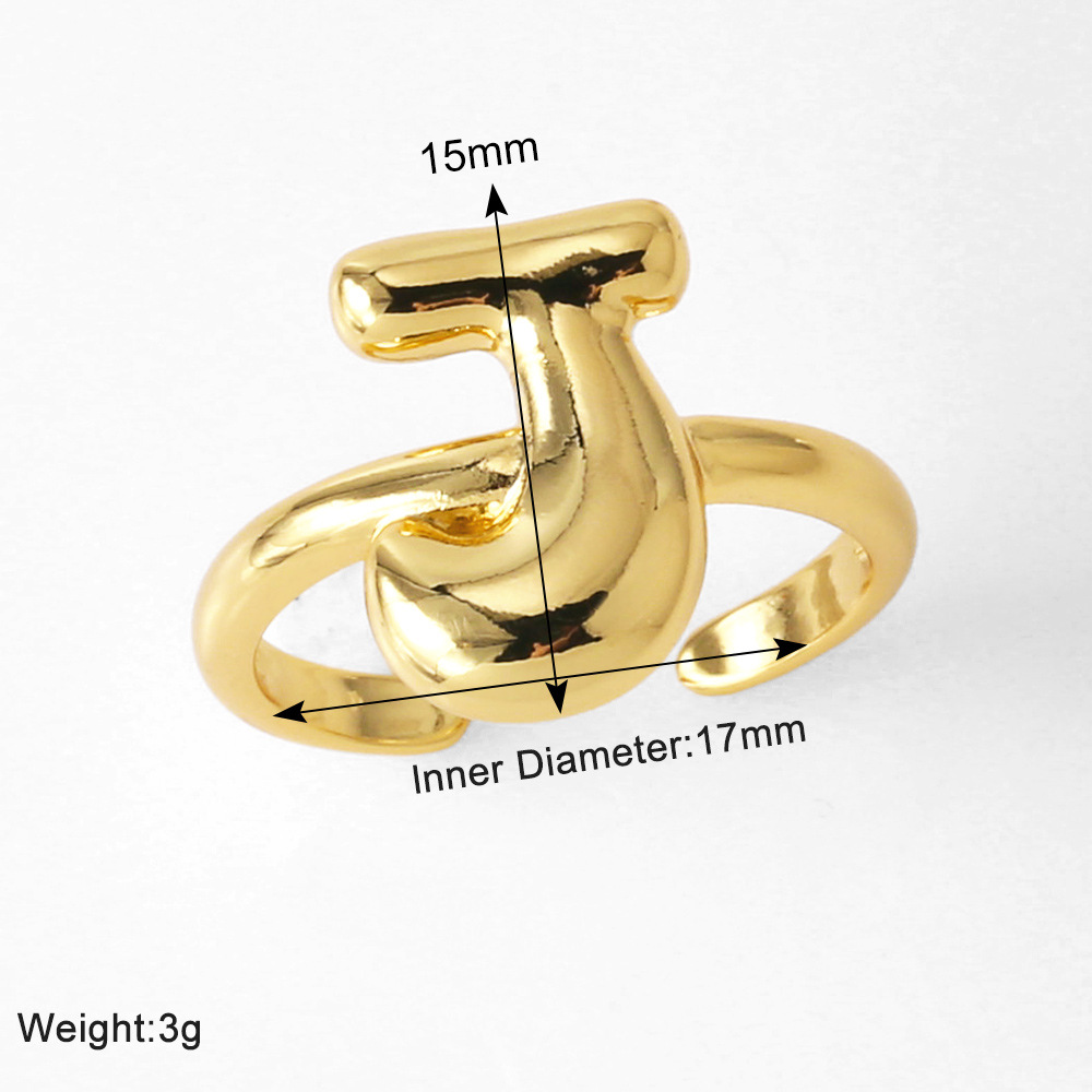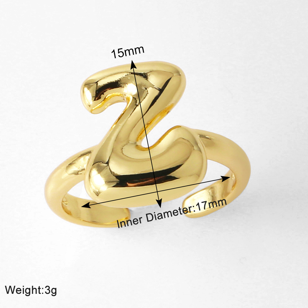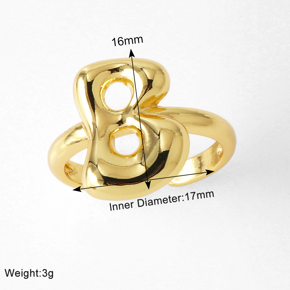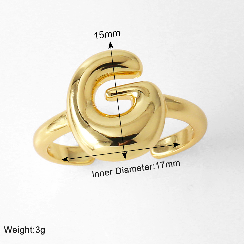 AS jewelry smooth 26 English letters ring female copper plated real gold open ring rih04