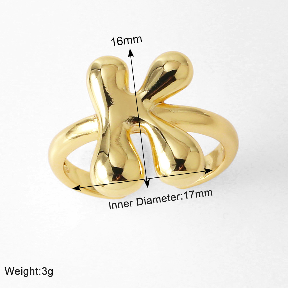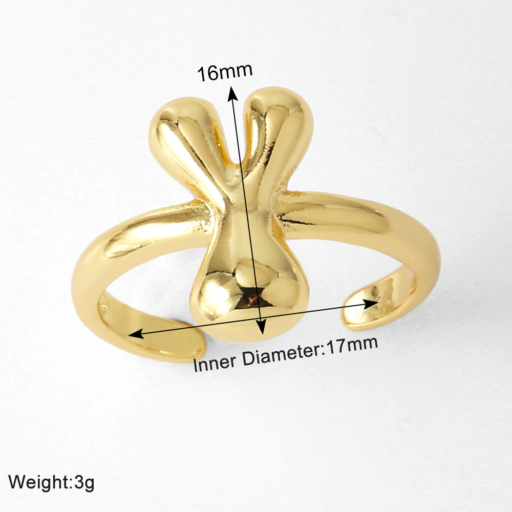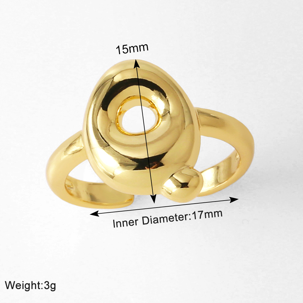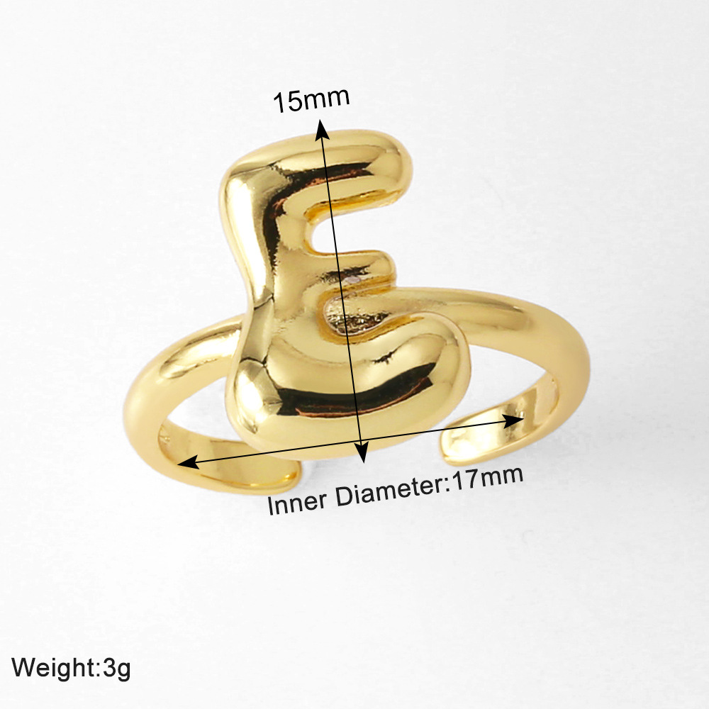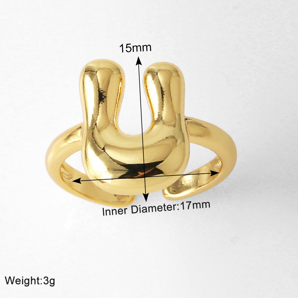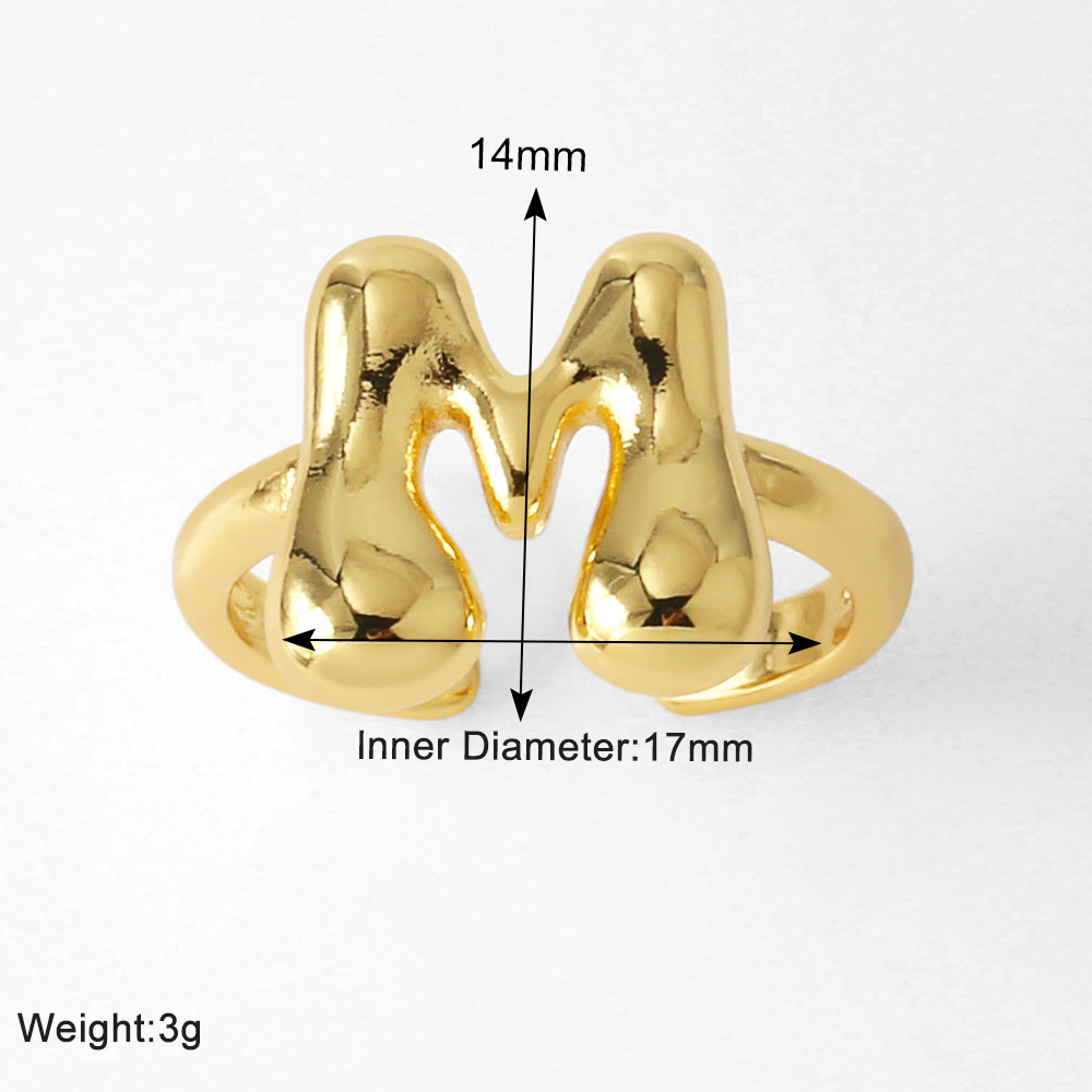 AS jewelry smooth 26 English letters ring female copper plated real gold open ring rih04
