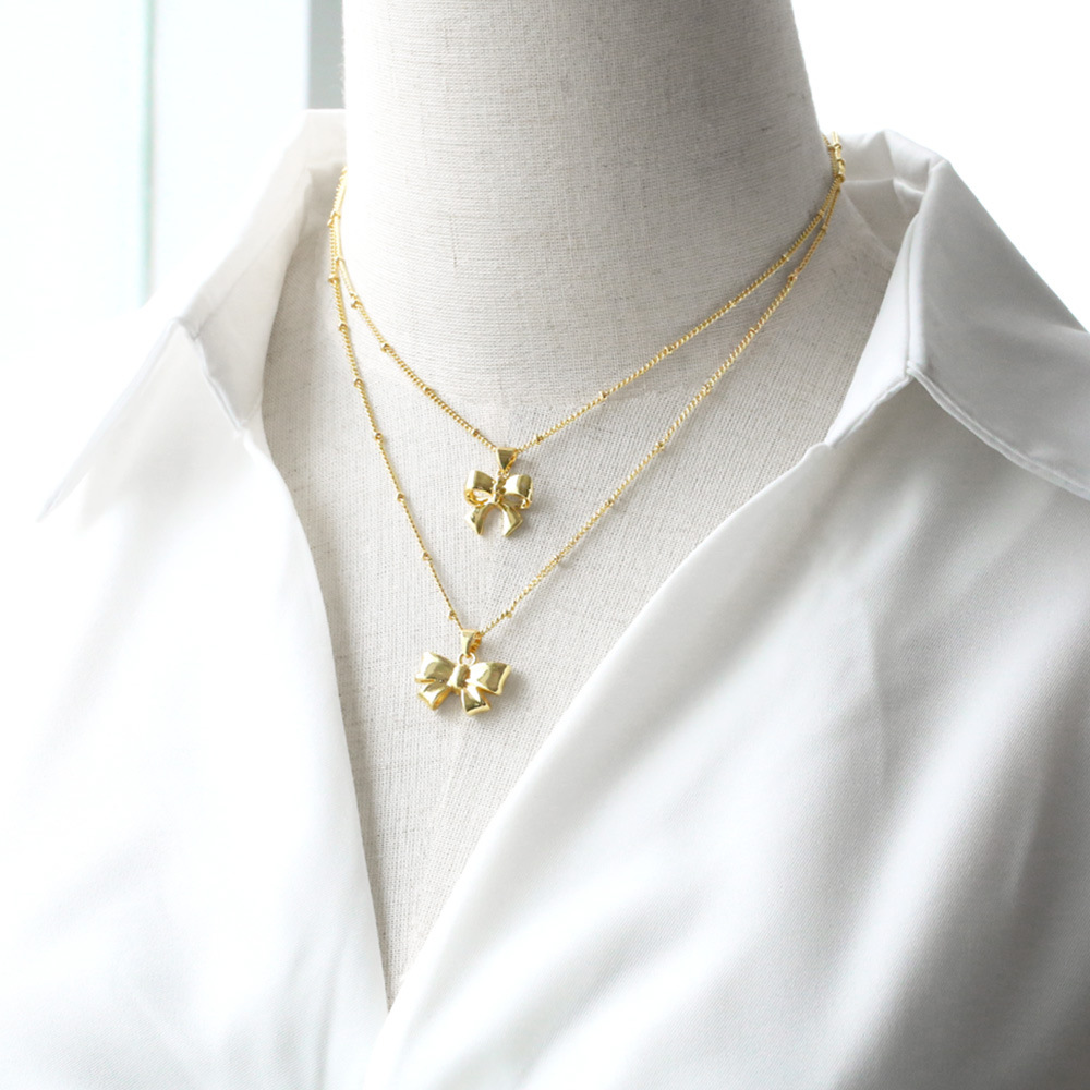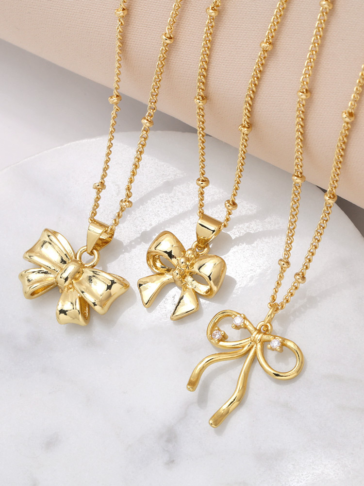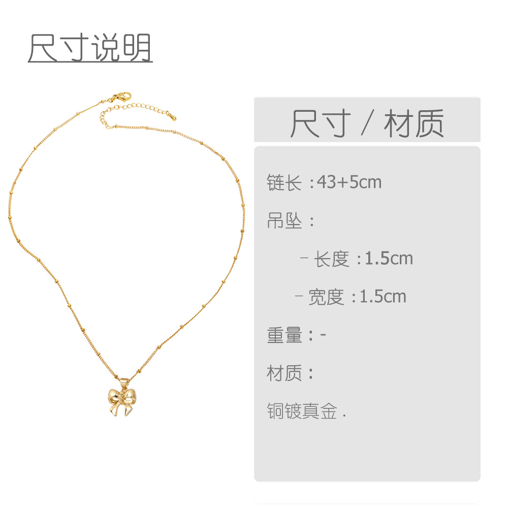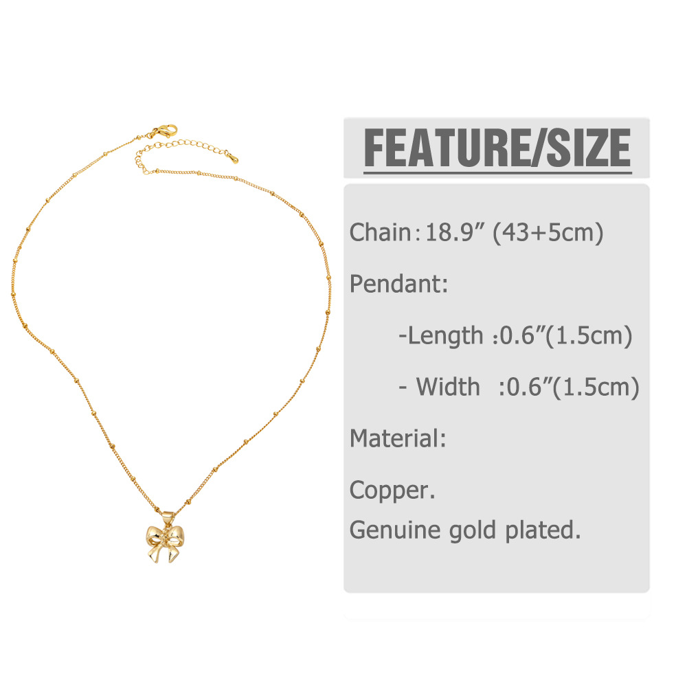 AS jewelry smooth bow necklace female copper plated real gold inlaid zircon clavicle chain nku31
