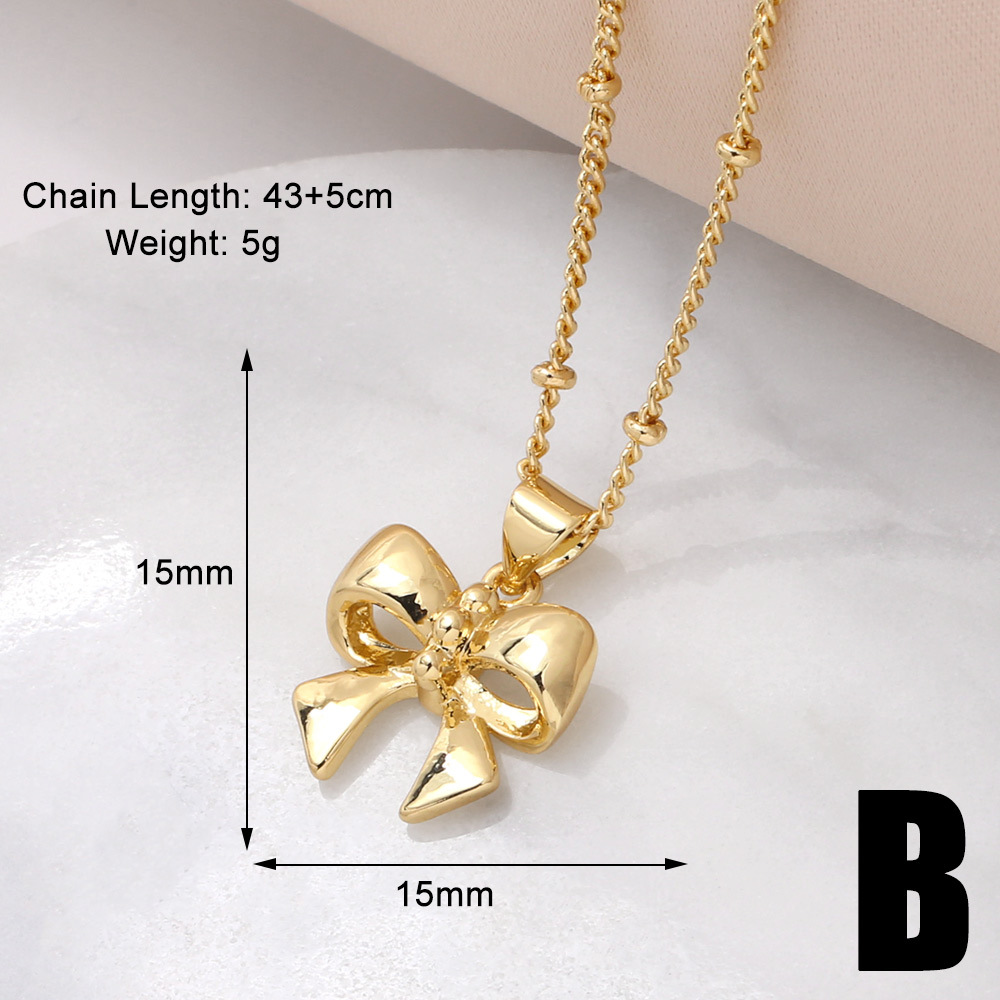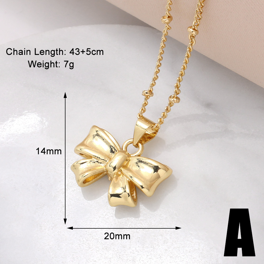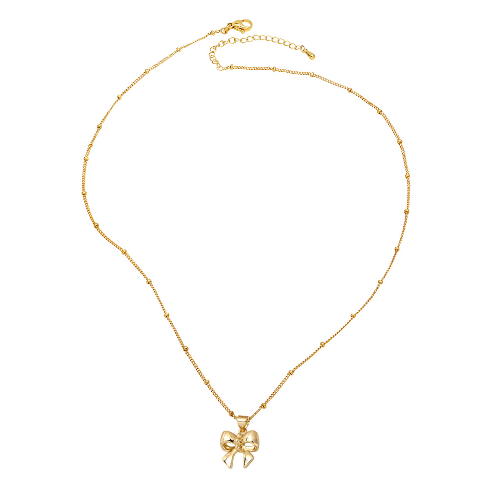 AS jewelry smooth bow necklace female copper plated real gold inlaid zircon clavicle chain nku31