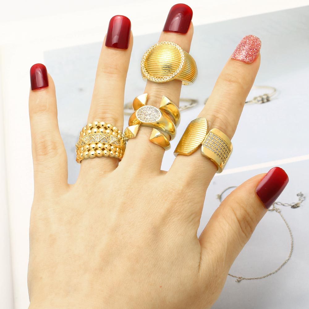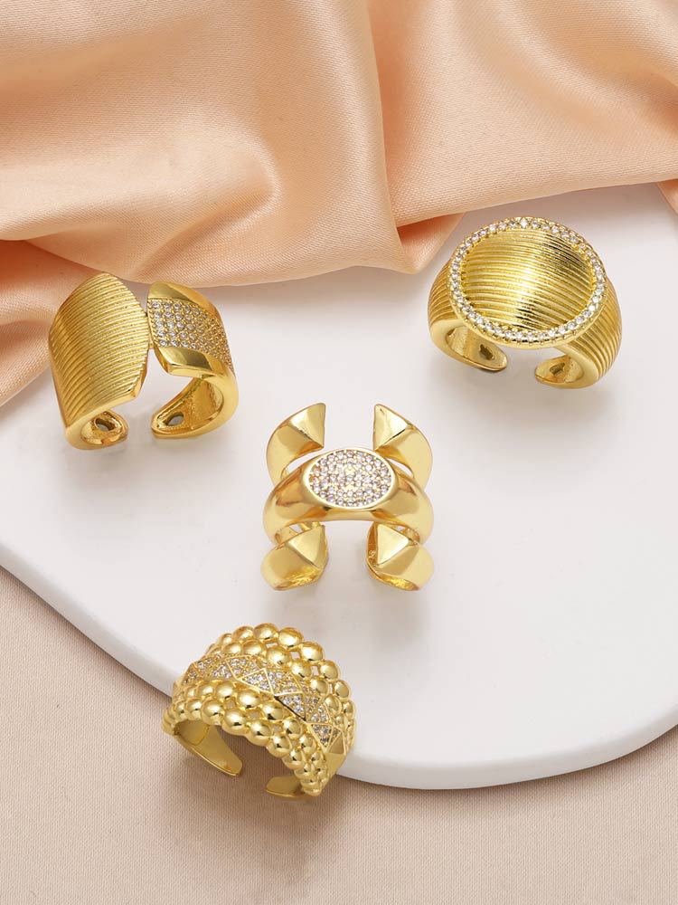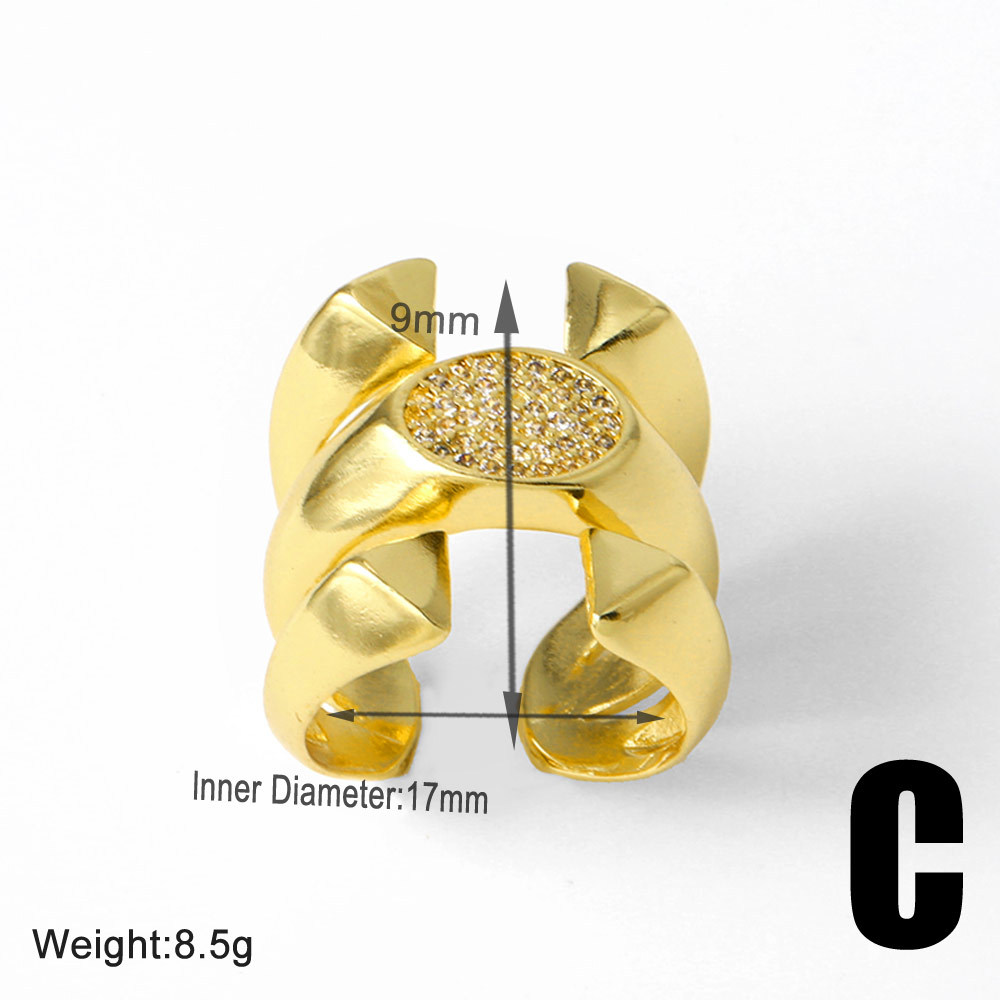 AS jewelry smooth double-layer ring copper plated 18k gold inlaid zircon irregular ring rih09