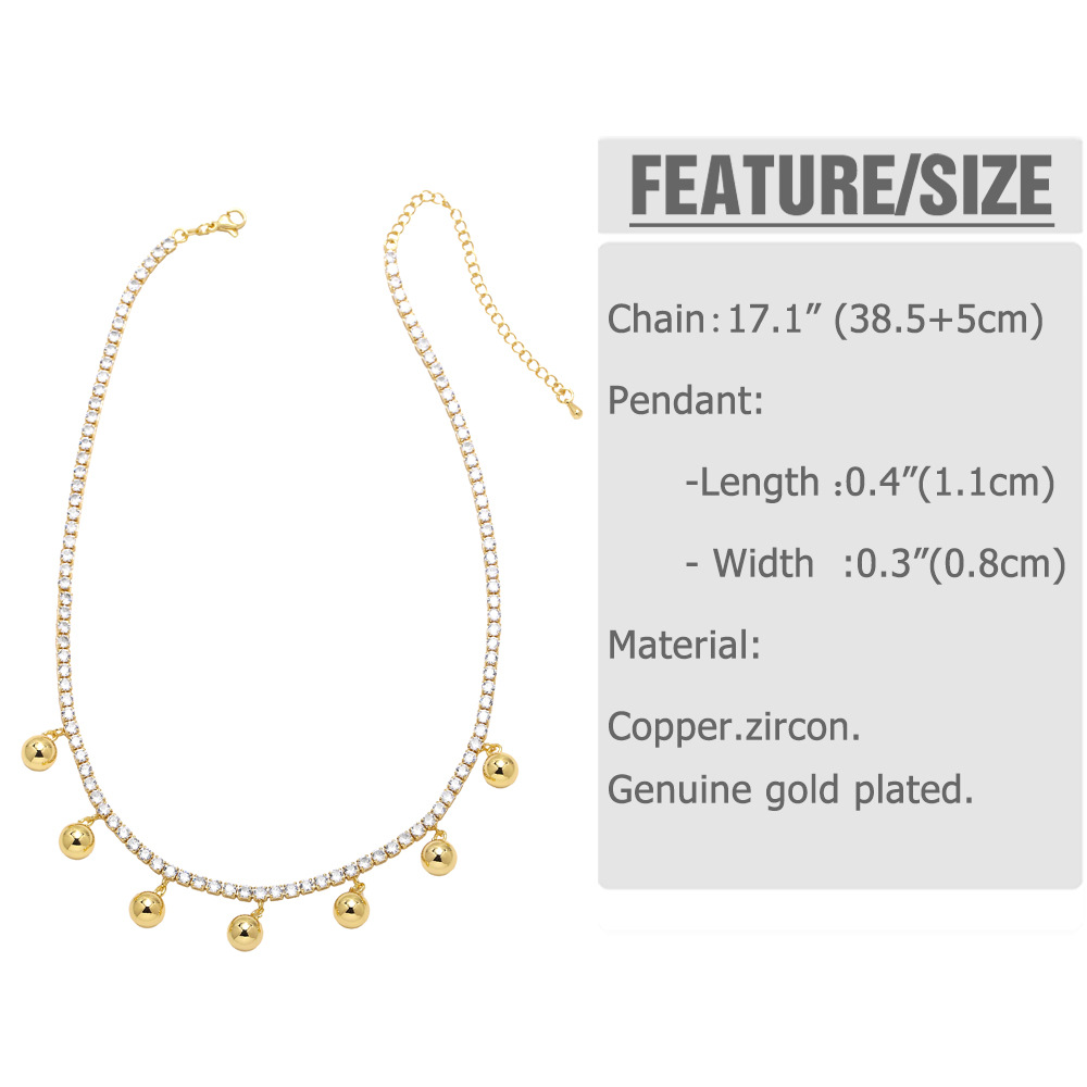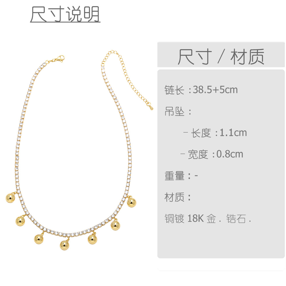 AS jewelry smooth round bead necklace copper plated 18k gold inlaid zircon hip hop clavicle chain nky80