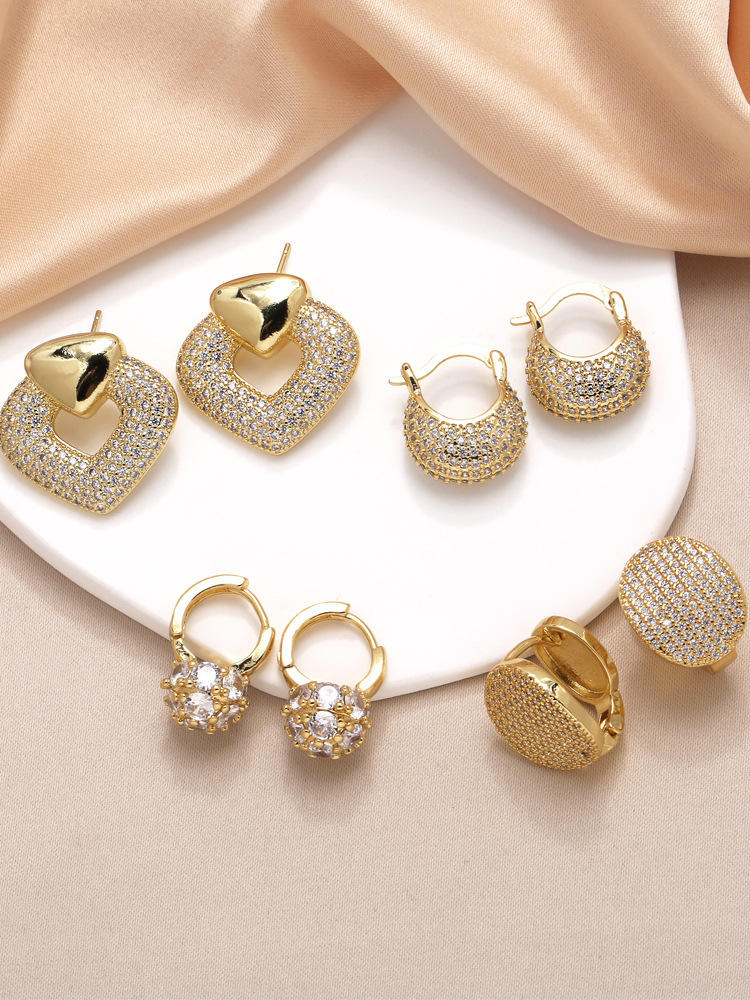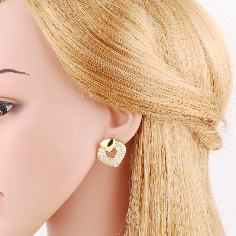 AS jewelry studs hot selling love full zircon earrings female copper plated real gold earrings era038