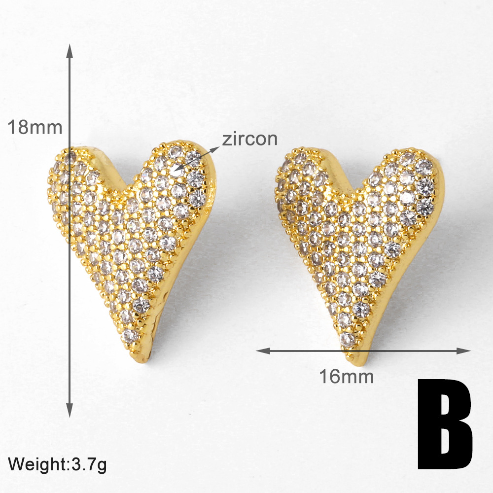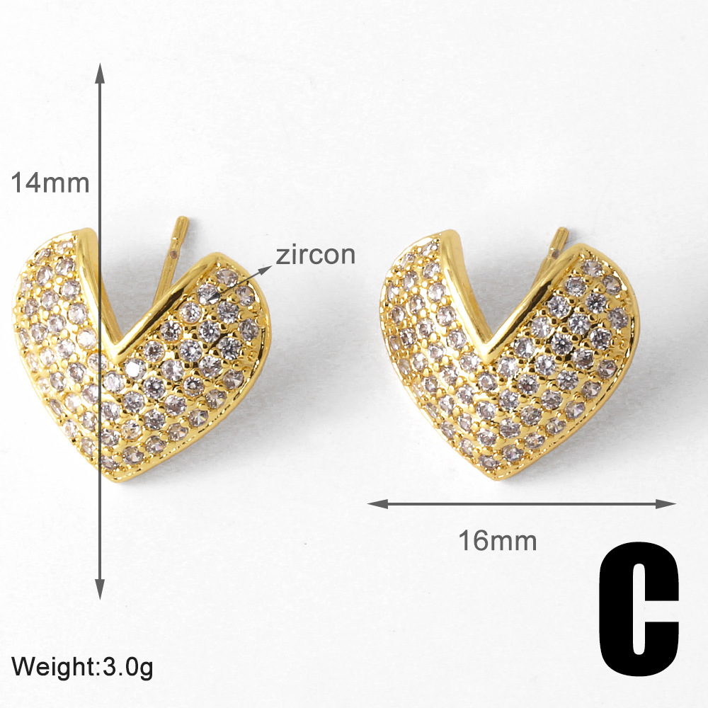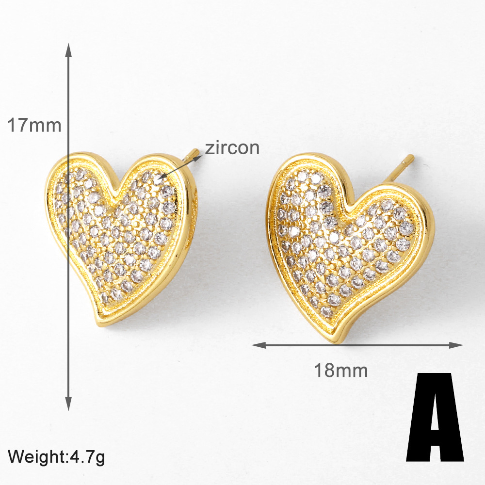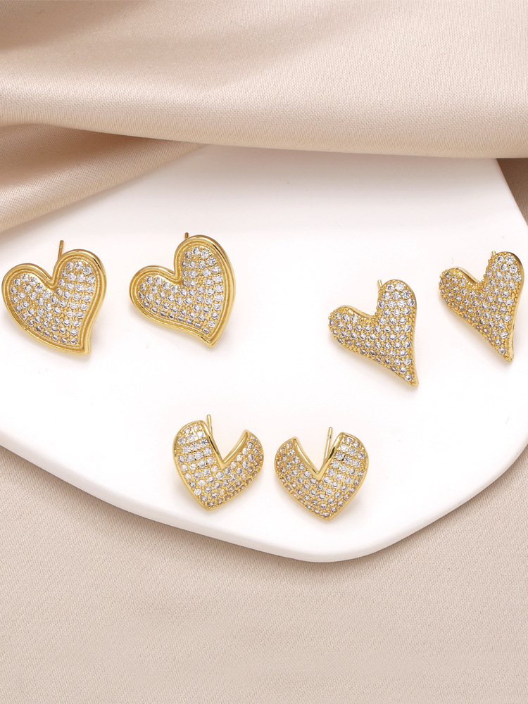 AS jewelry studs love heart earrings female gold-plated full zircon earrings era029