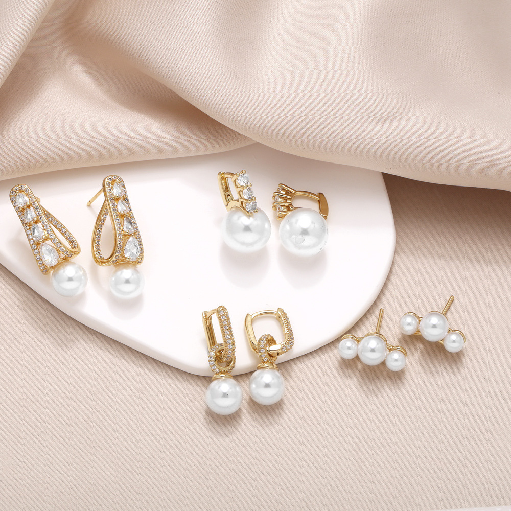 AS jewelry studs pearl earrings female geometric gold-plated zircon earrings era135