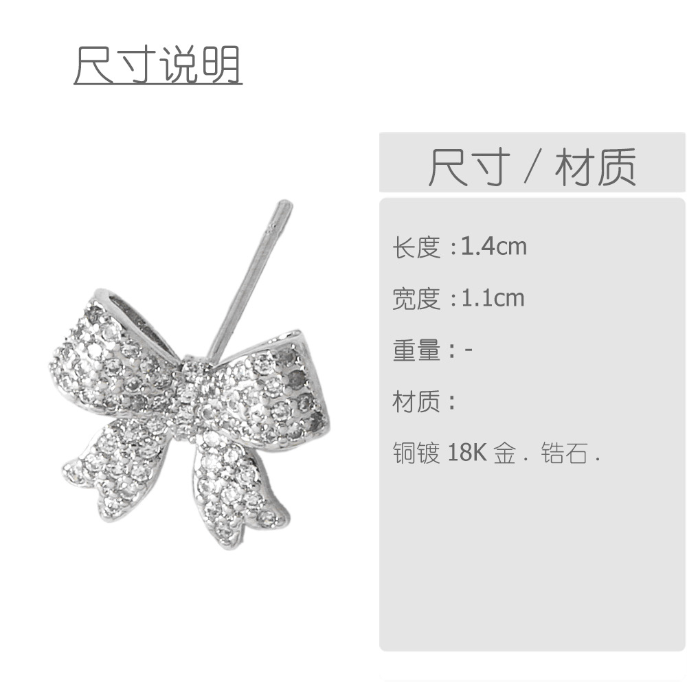 AS jewelry studs source hot selling bow earrings female gold-plated zircon earrings earrings erz30