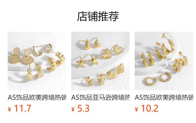 AS jewelry tmu hot selling full zircon love heart C-shaped earrings earrings erz64 earrings