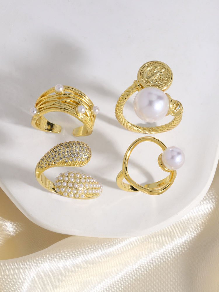 AS jewelry vintage pearl ring female copper plated 18k gold Madonna ring female riq52