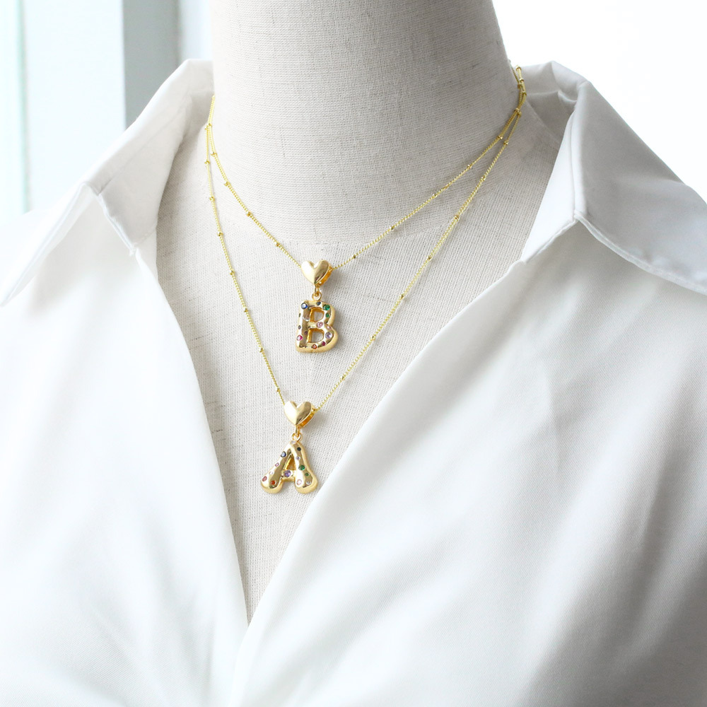 Letter necklace European and American new color zircon necklace with diamond surname English AZ letter necklace nkp25
