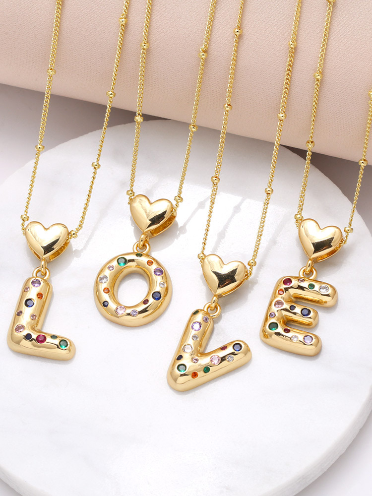 AS jewelry new style inlaid zircon love 26 letters pendant necklace clavicle chain nkb281necklace