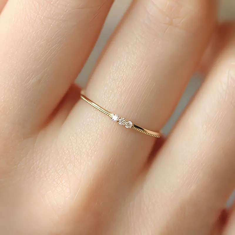 Attendance stacking simple geometric ring women's exquisite daily wear jewelry fashionable minimalist round zircon