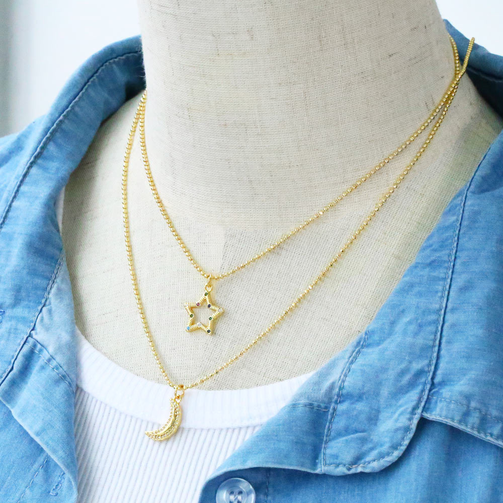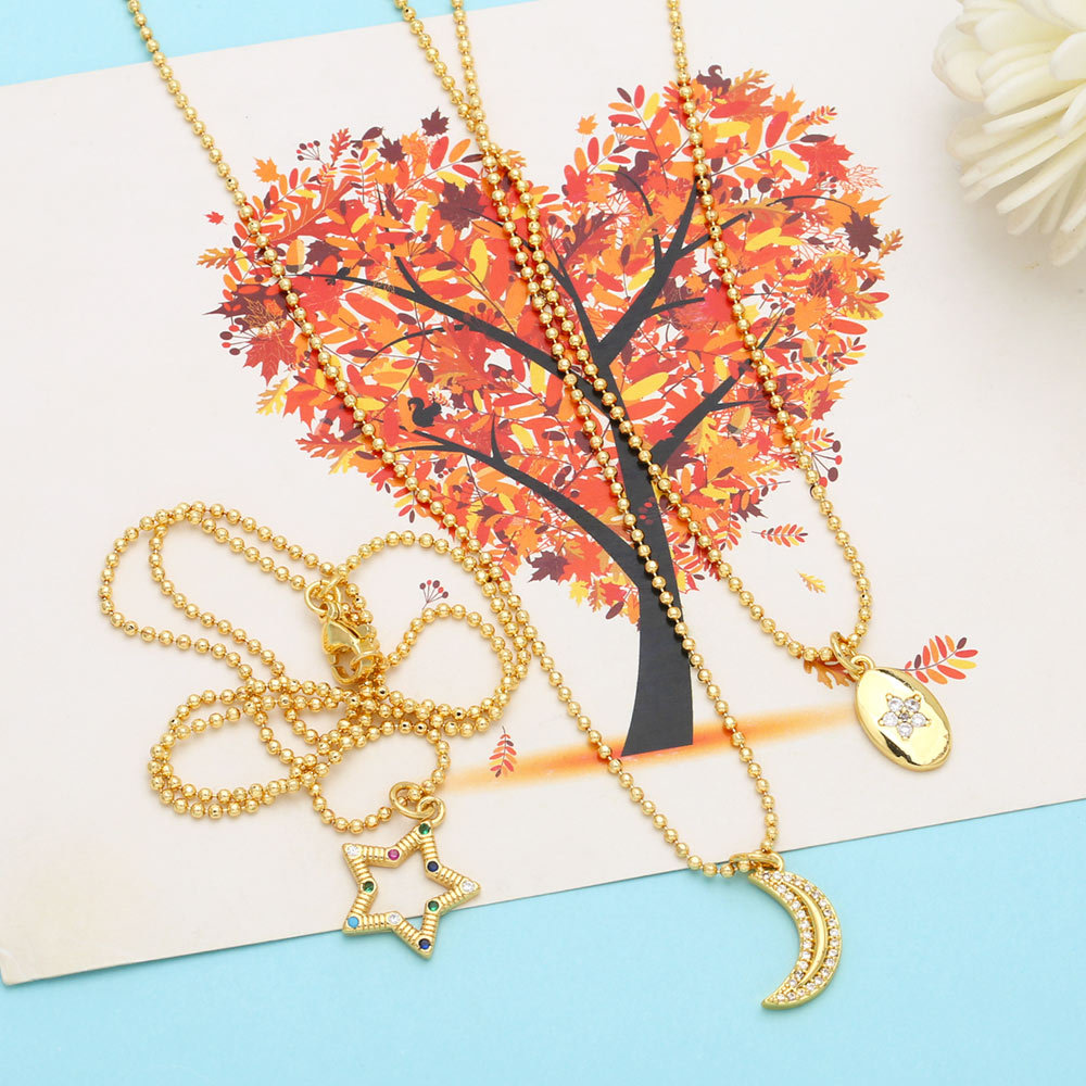 Autumn and winter new star and moon necklace female personality fashion inlaid diamond five-pointed star sweater chain nkb503