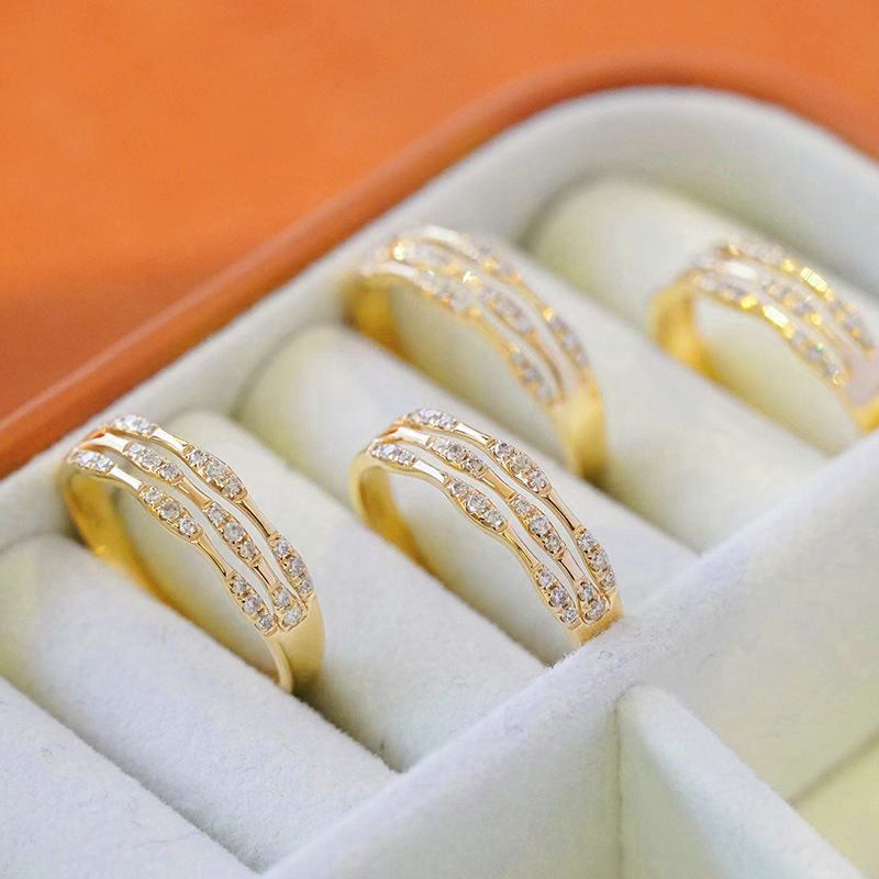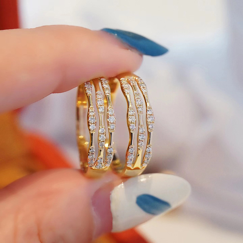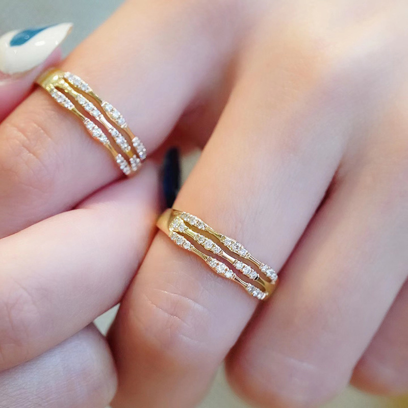 Bamboo knot multi-ring ring for women with diamonds, fashionable and individual, light luxury, niche design, index finger, high-end feel