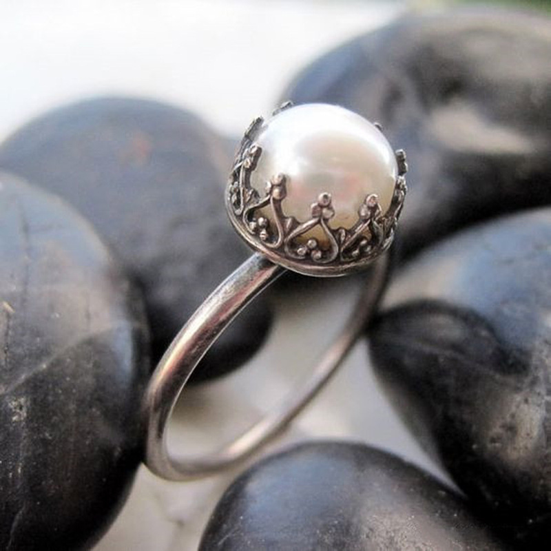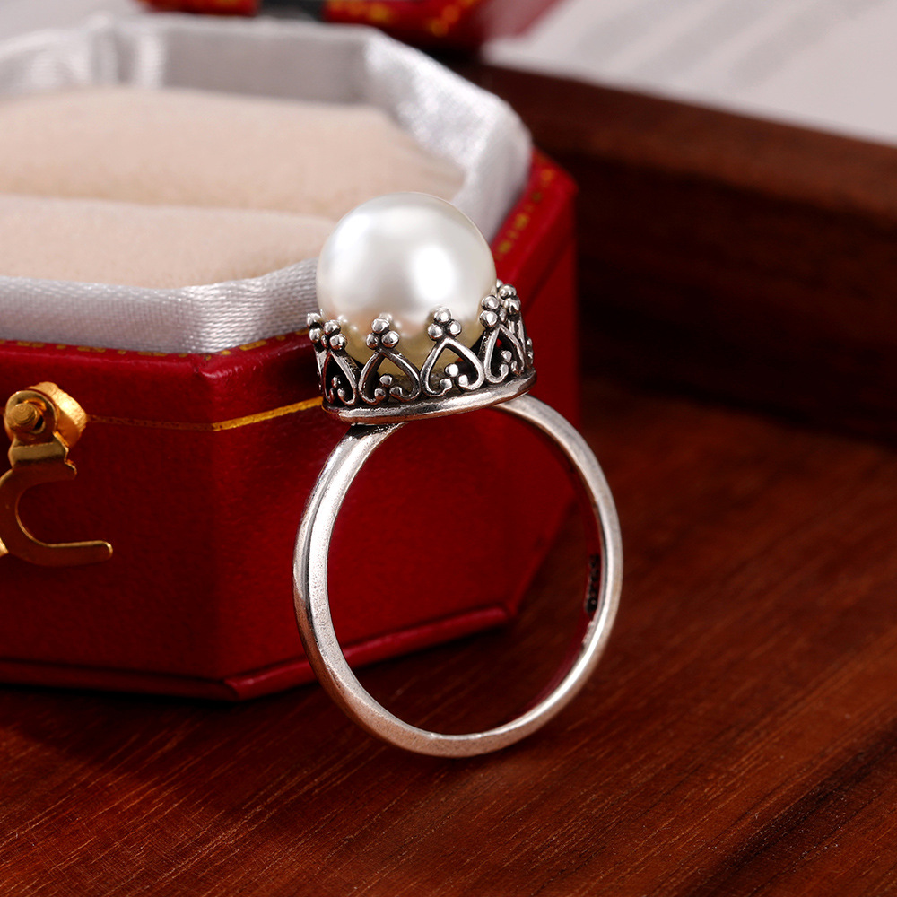 Baroque new antique silver-plated imitation pearl ring European and American temperament simple white pearl index finger ring for women