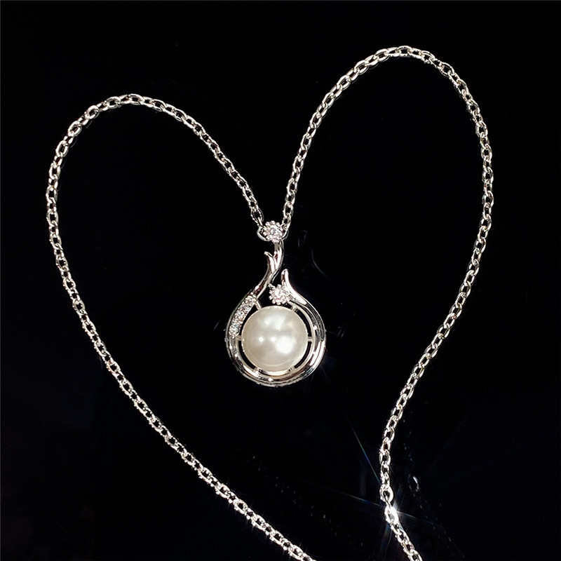 Baroque pendant popular imitation pearl simple women's necklace niche design geometric clavicle chain