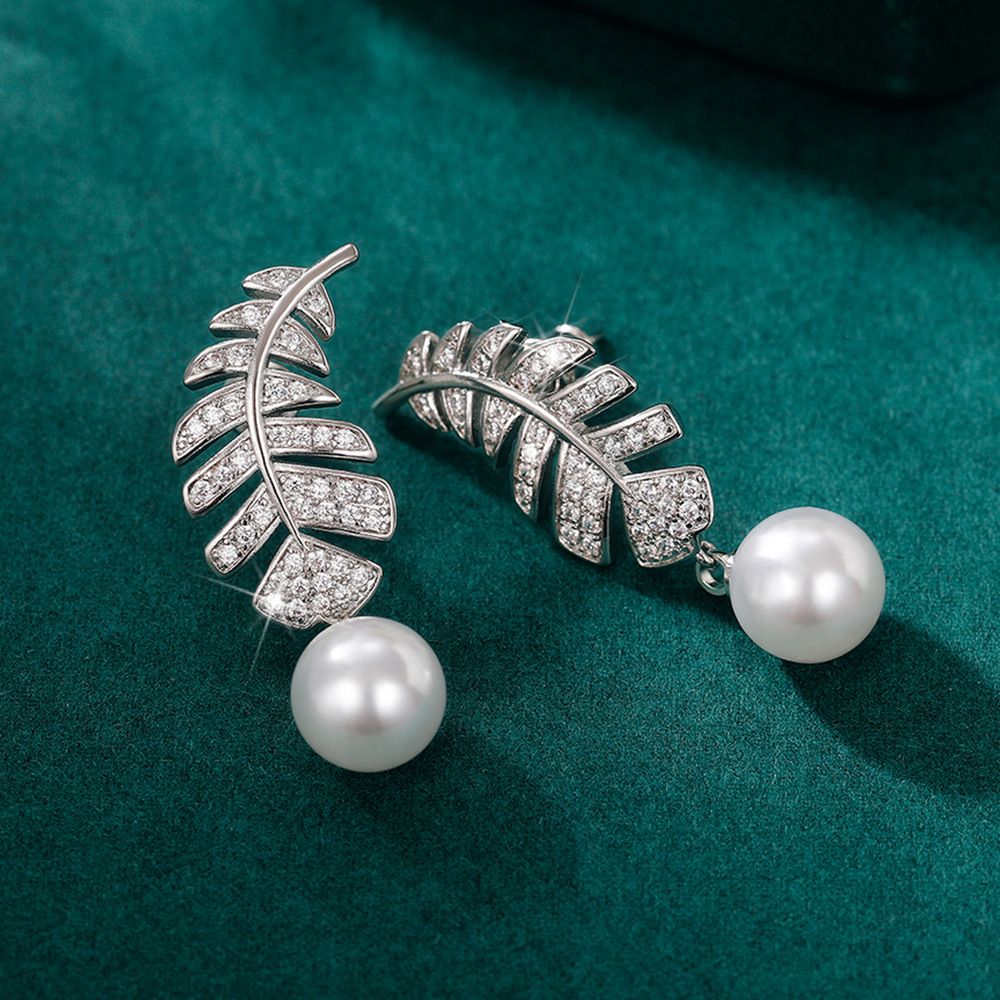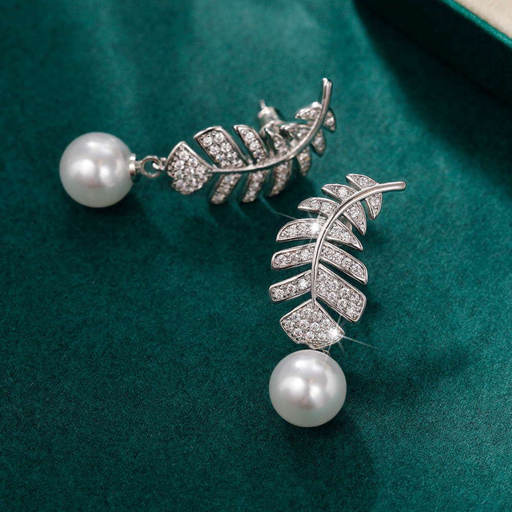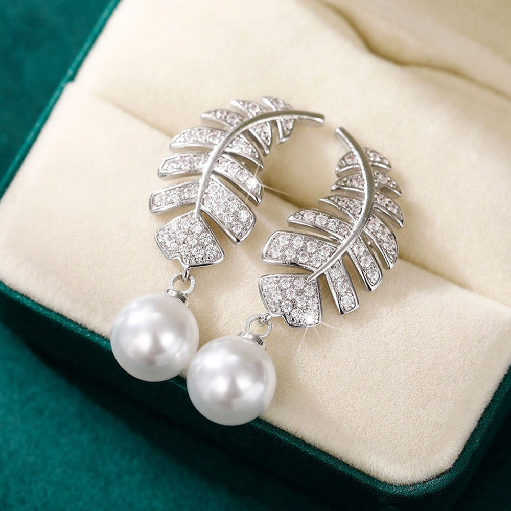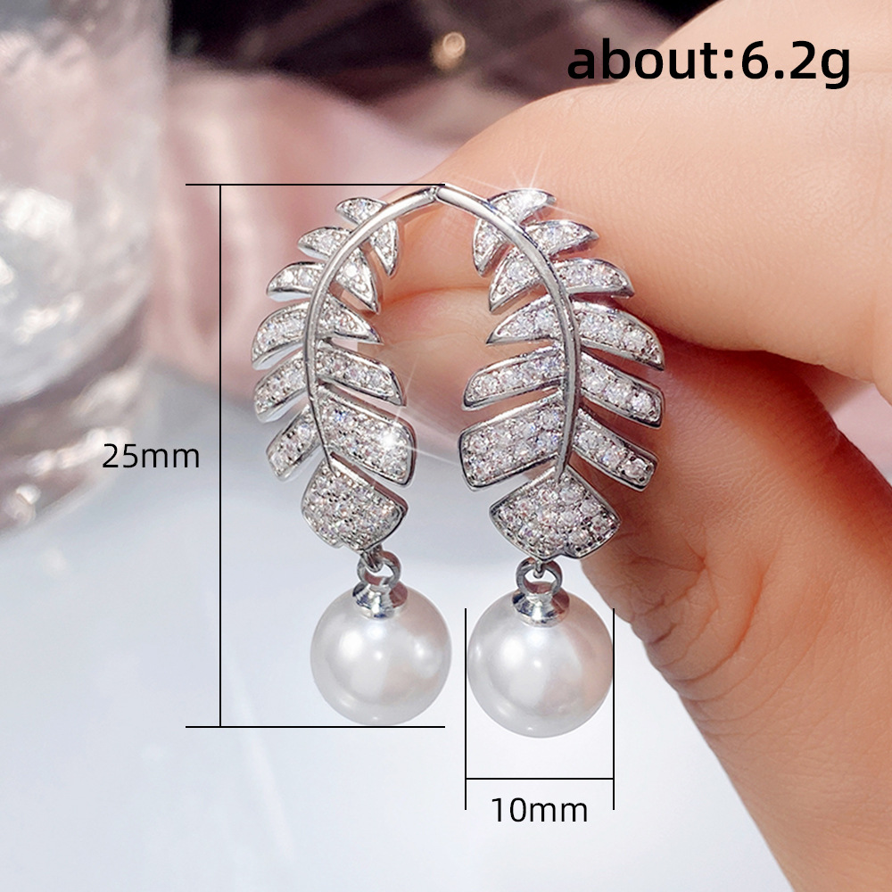 Baroque style celebrity style elegant sparkling zircon imitation pearl earrings long leaf earrings