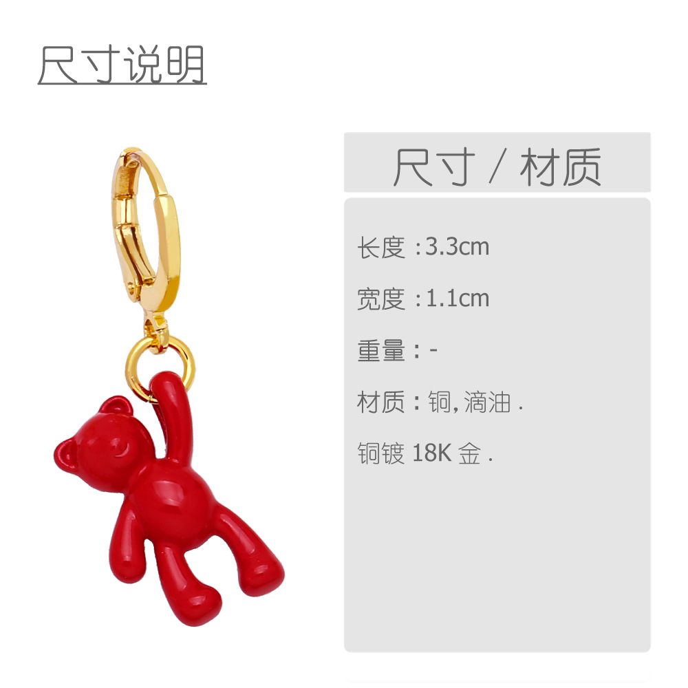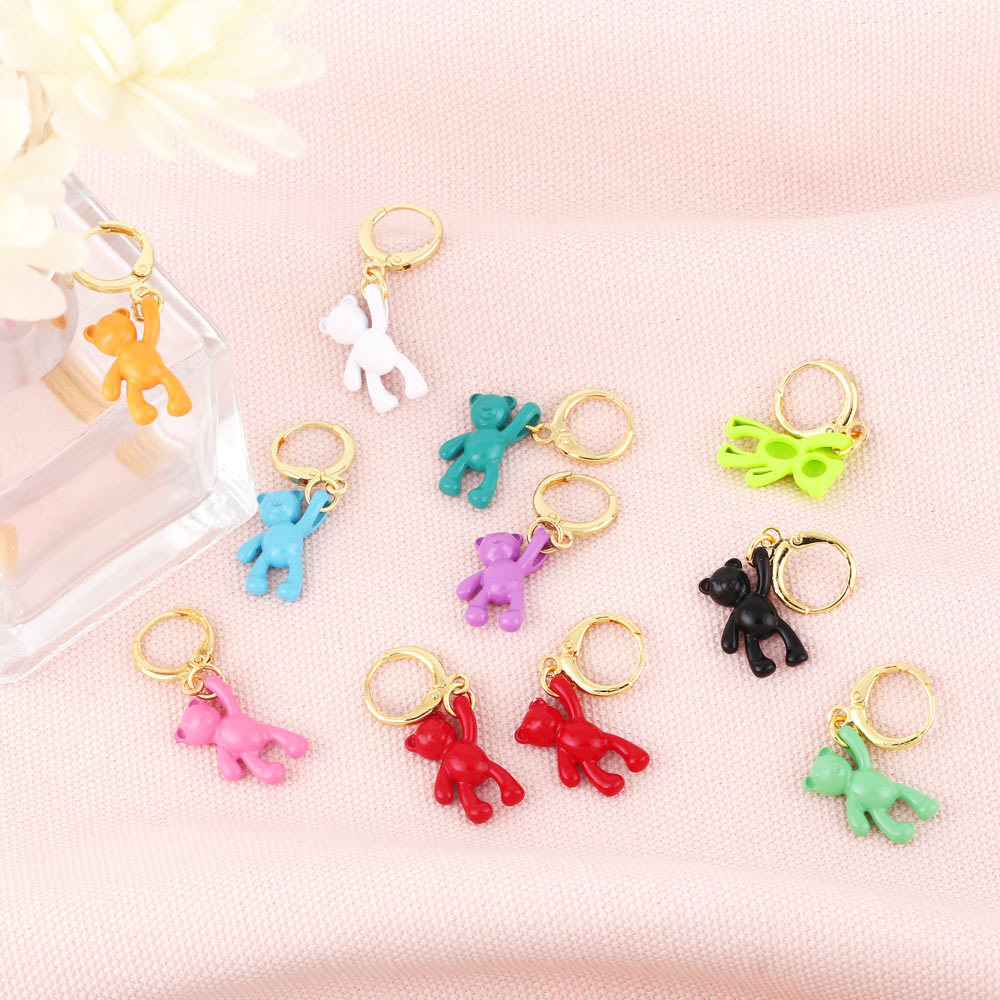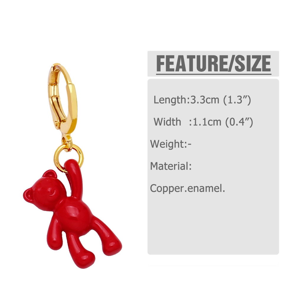 Bear earrings for women European and American design personality retro candy color sweet cool trend personality temperament earrings erz04