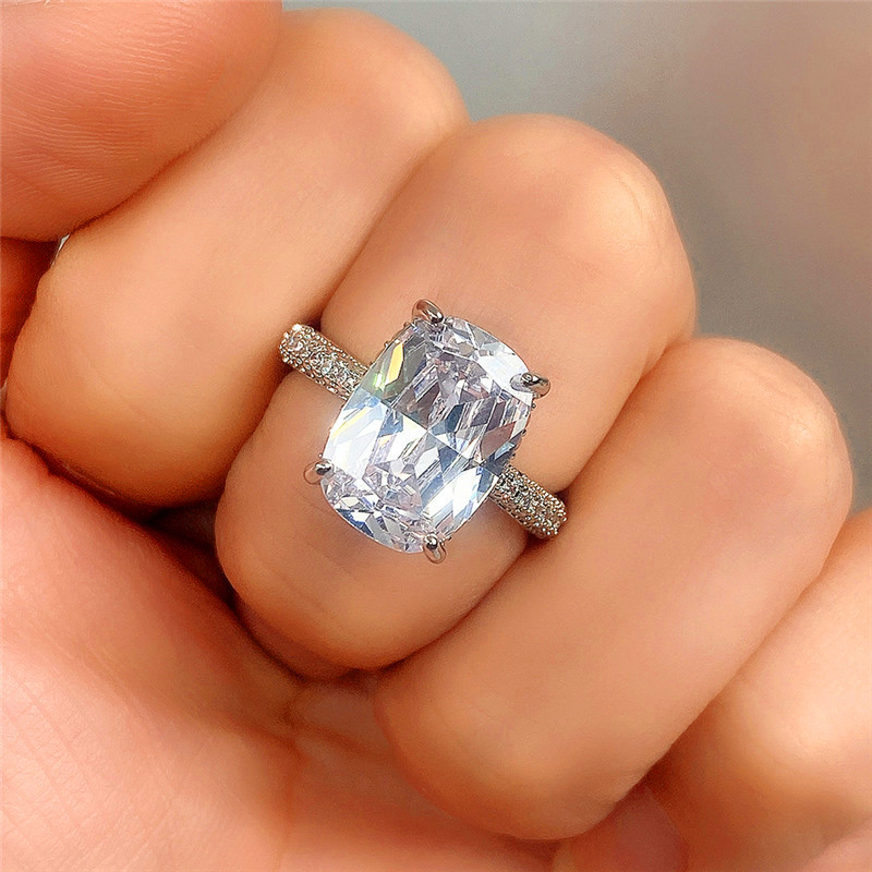 Best-selling classic four-claw white square diamond ring, large zircon ring jewelry wholesale