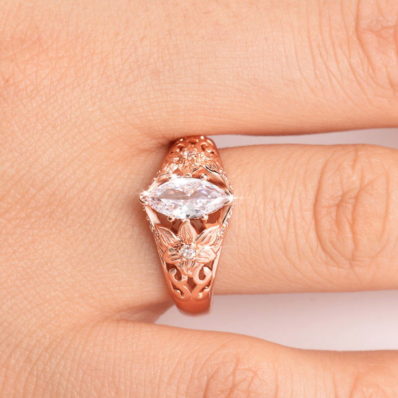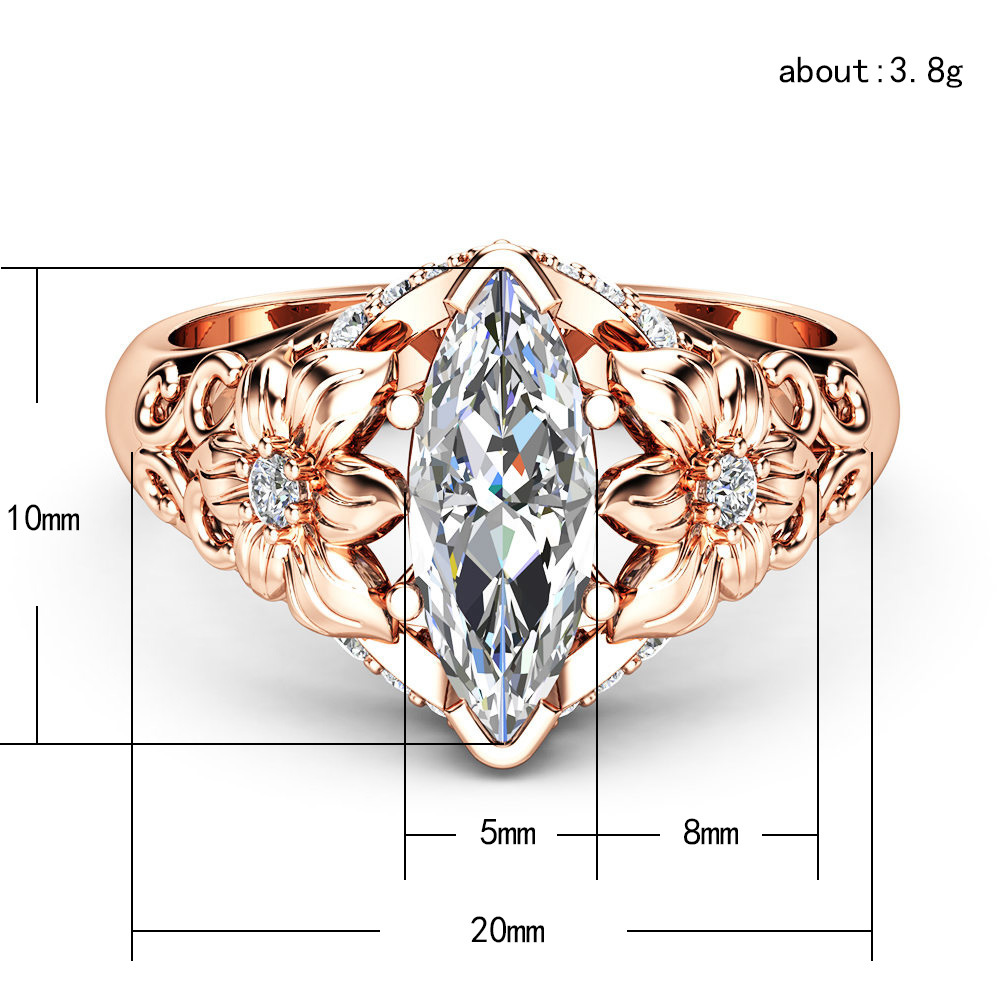 Best-selling European and American luxury floral ring with marquise-shaped zircon rose gold-plated party and dance jewelry