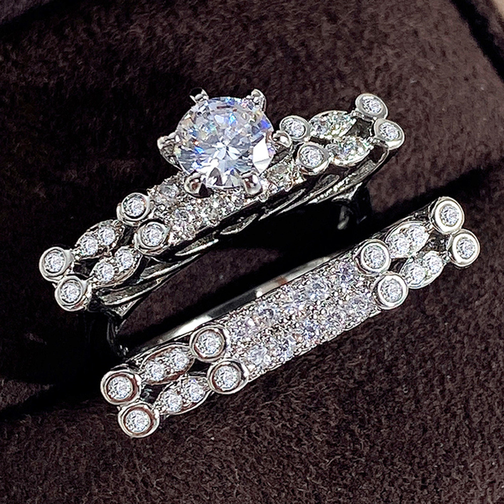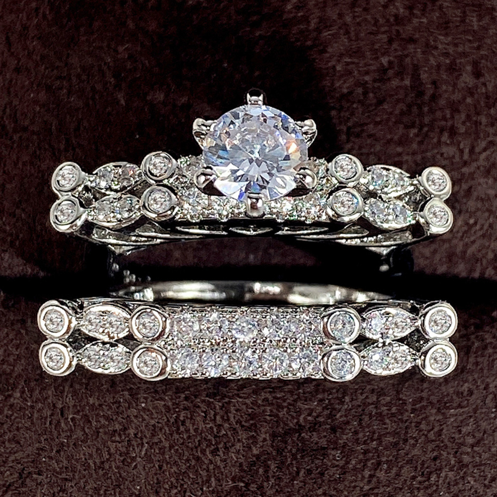 Classic four-claw imitation zircon micro-inlaid ring women's double row two-color twist arm ring engagement wedding ring women