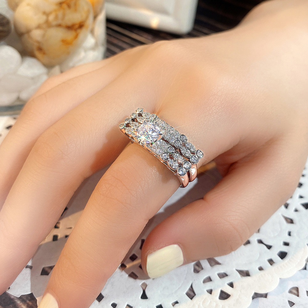 Micro-inlaid celebrity style classic all-match popular ring six-claw zircon wedding ring European and American style light luxury ring