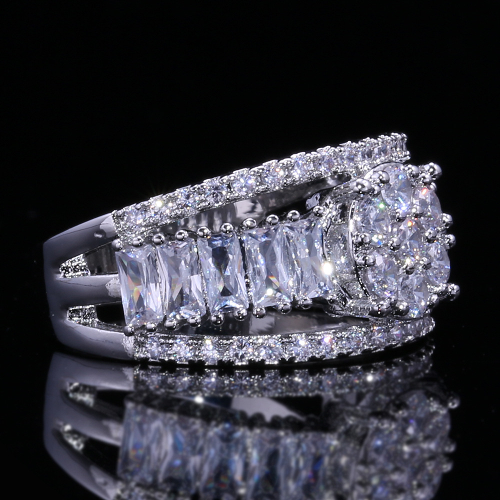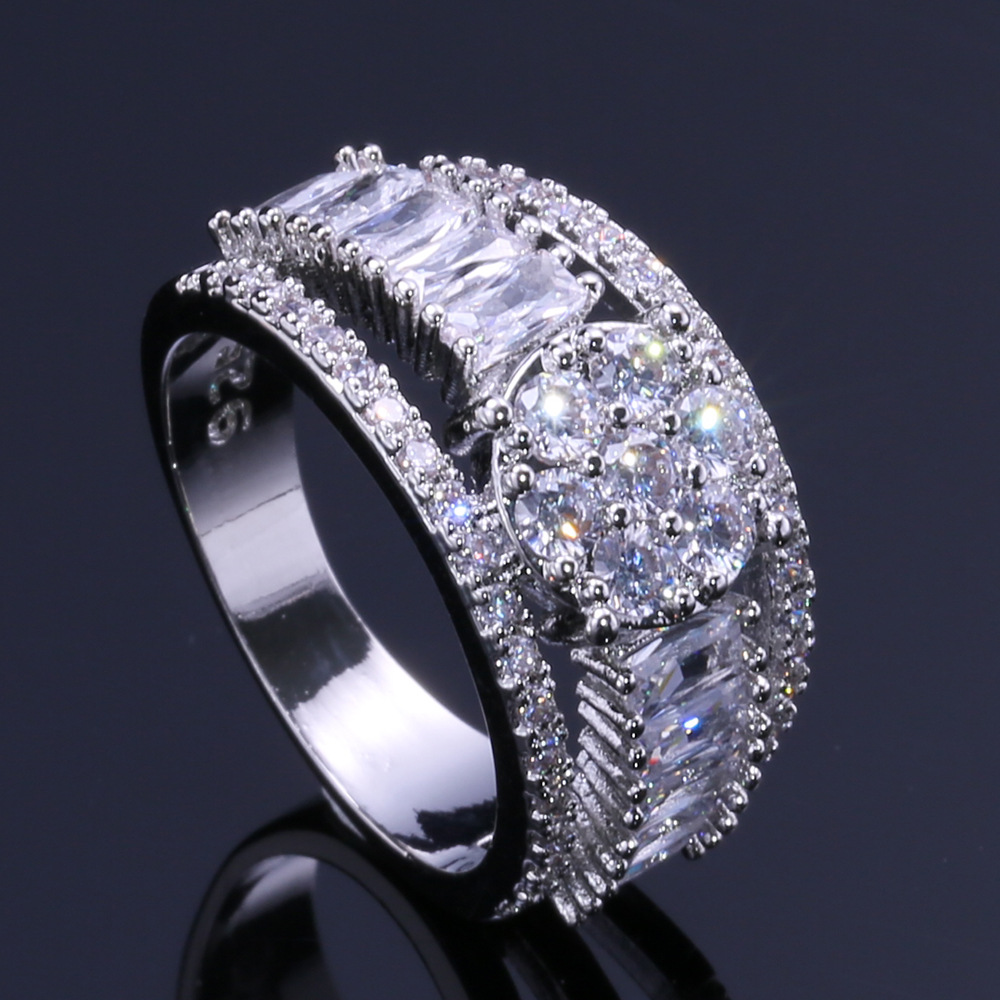 New zircon ring hollow cross four claws fashion design proposal wedding ring birthday gift ring