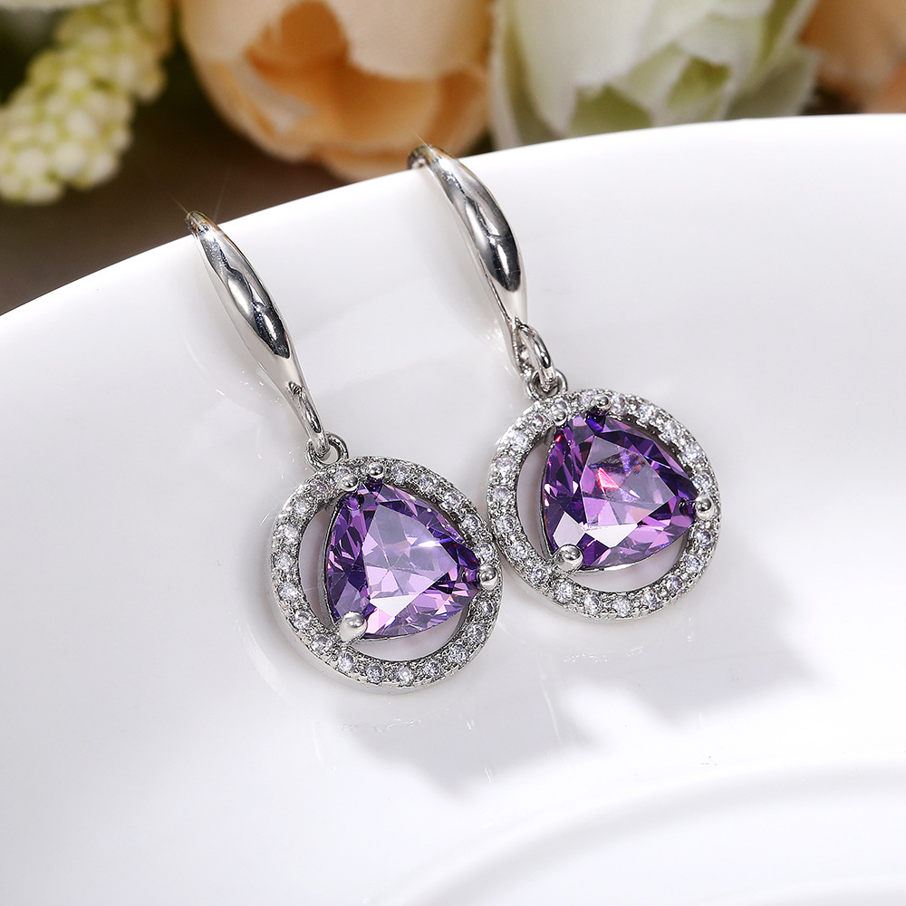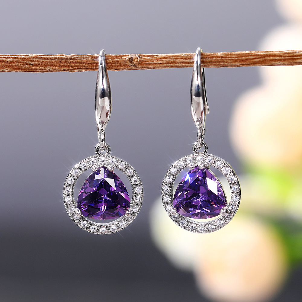 Best-selling new earrings, simple and mysterious purple zircon earrings, girls' birthday gifts, earrings accessories