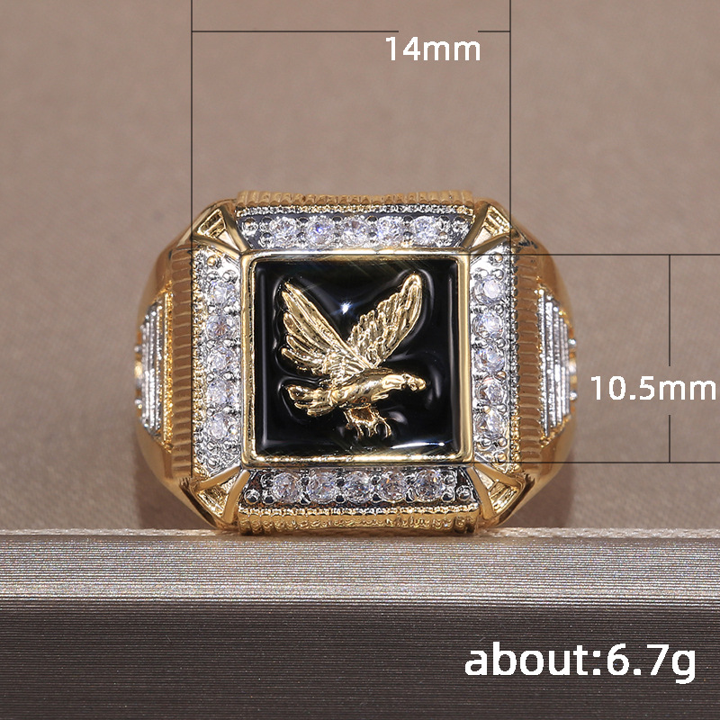 Best-selling new style atmospheric men's electroplated eagle surrounding diamond ring European and American gold-plated ring