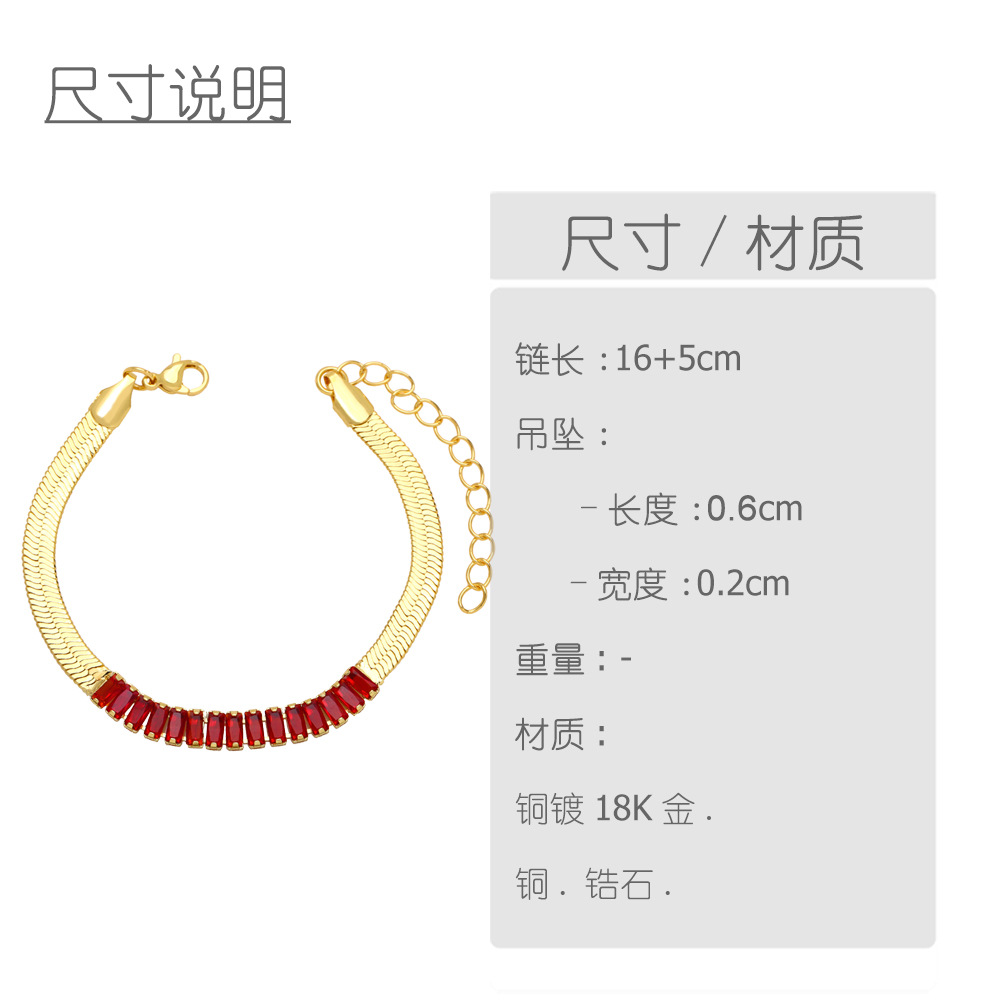Blade chain bracelet fashionable simple flat snake bone chain European and American niche colored zircon bracelet female jewelry brh83