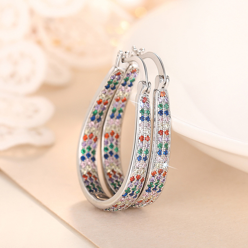 Bohemian style colorful earrings fresh and eye-catching inlaid zircon jewelry niche design earrings