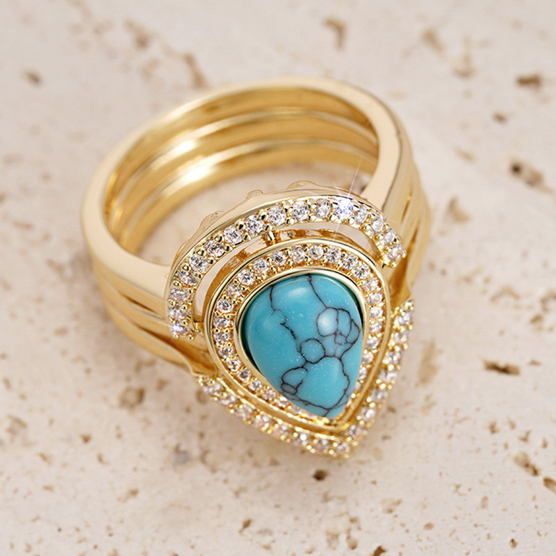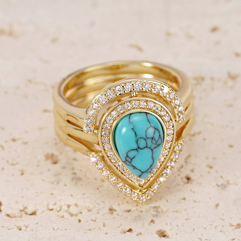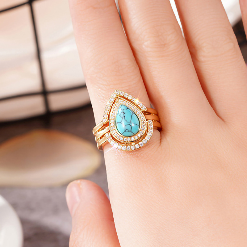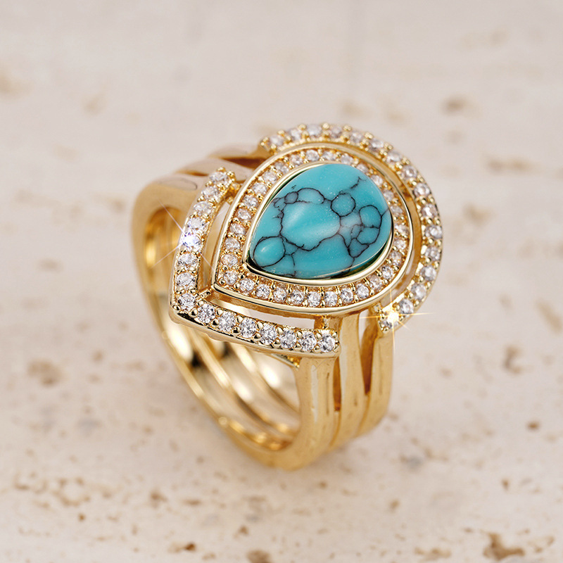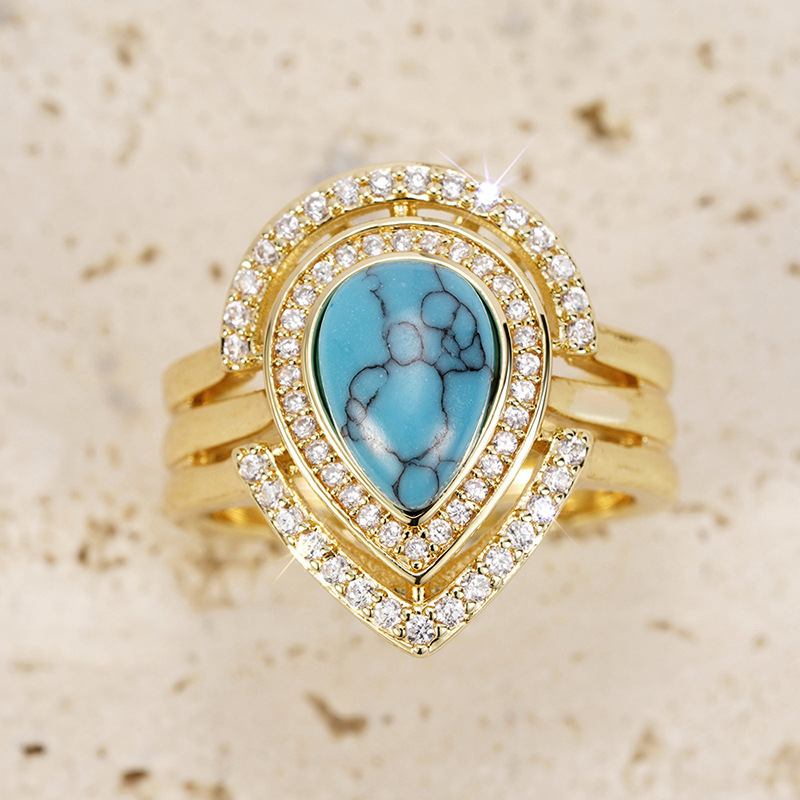 Bohemian style ring fashion water drop retro ring literary geometric popular temperament ring