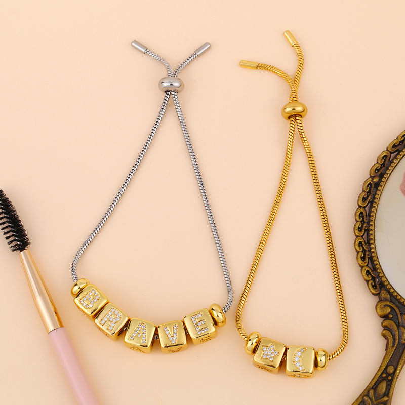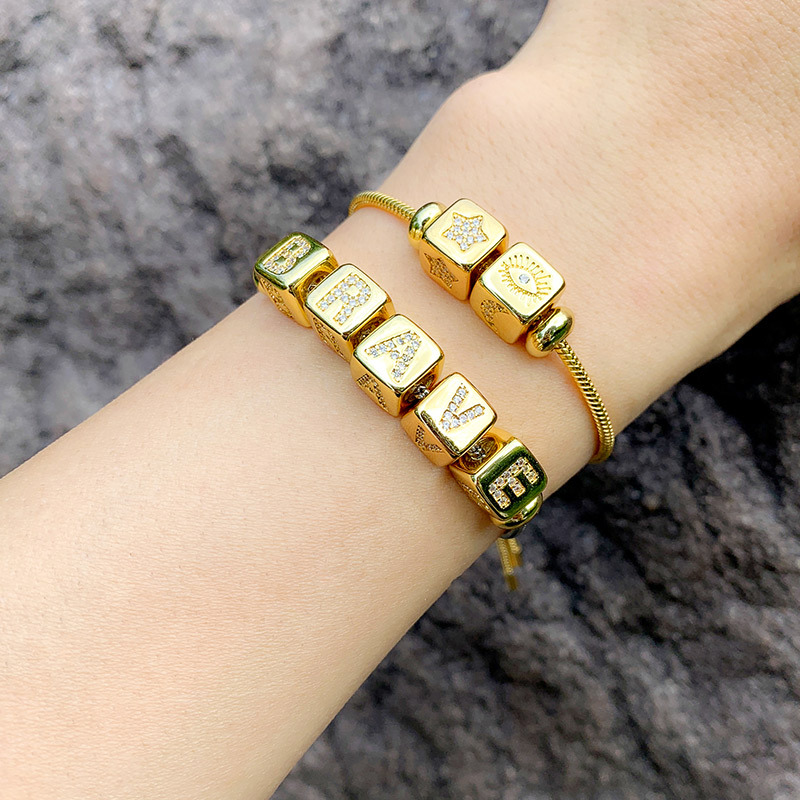 AS jewelry full zirconium 26 English letters bracelet copper plated real gold adjustment jewelry brm62
