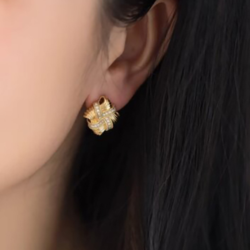 Braided cross earrings for women, micro-inlaid, elegant, light luxury style earrings, fashionable design, French earrings