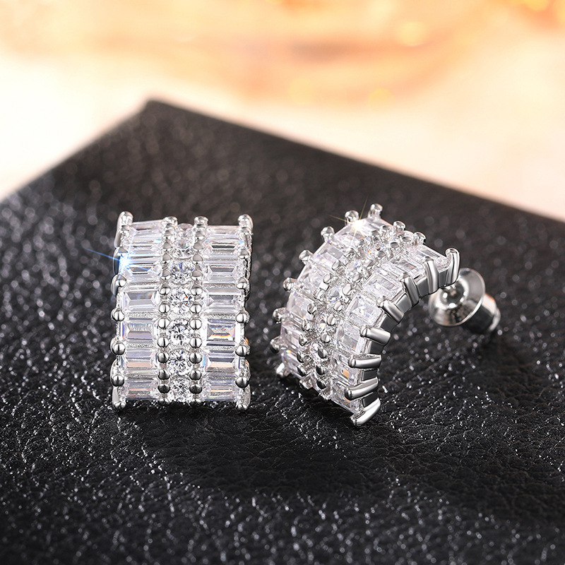 Brass electroplating simple versatile earrings for women geometric zircon design jewelry fashionable daily matching jewelry