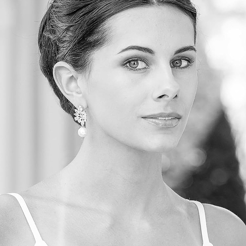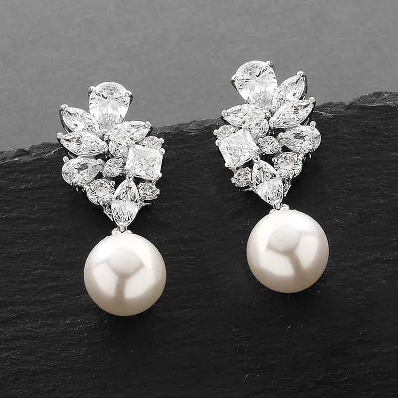 Bridal wedding light luxury style earrings for women imitation pearl floral water drop jewelry high-end evening dress accessories