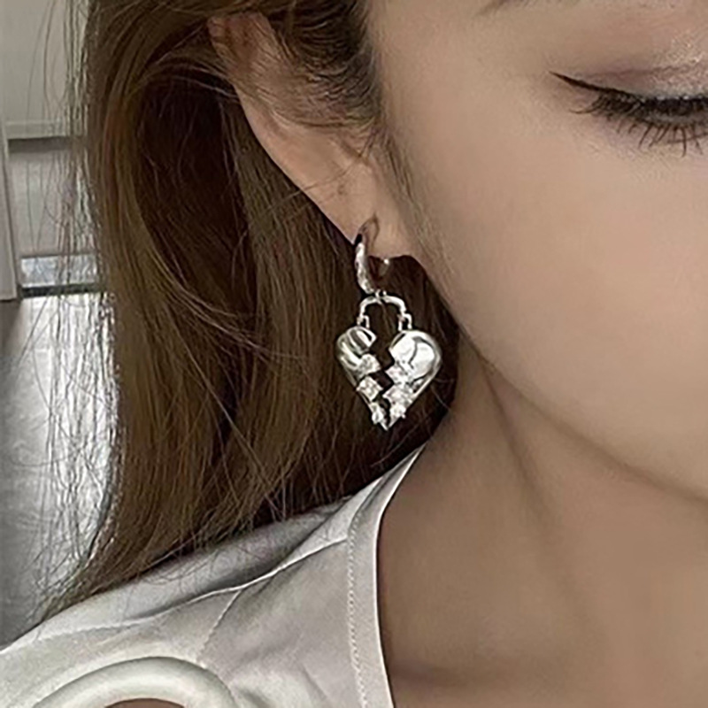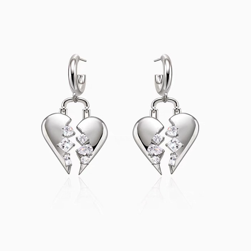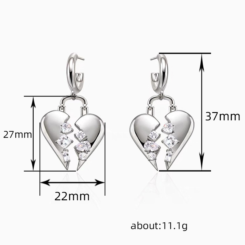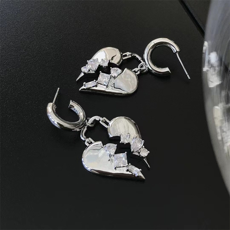 Broken zircon heart earrings cool style fashion light luxury design earrings personality temperament heart-shaped earrings