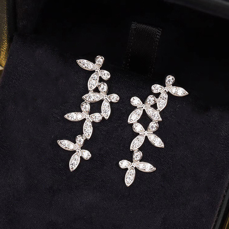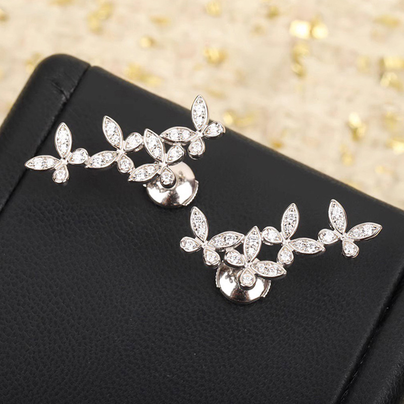 Butterfly flower exquisite earrings for women, fashionable and popular earrings, micro-inlaid zircon, shiny everyday earrings