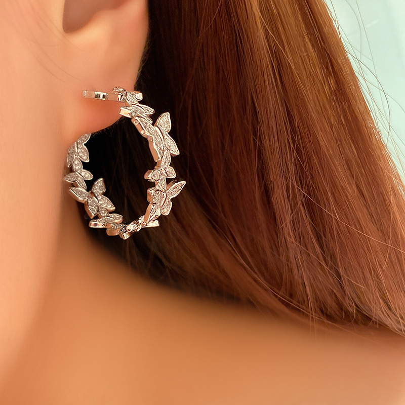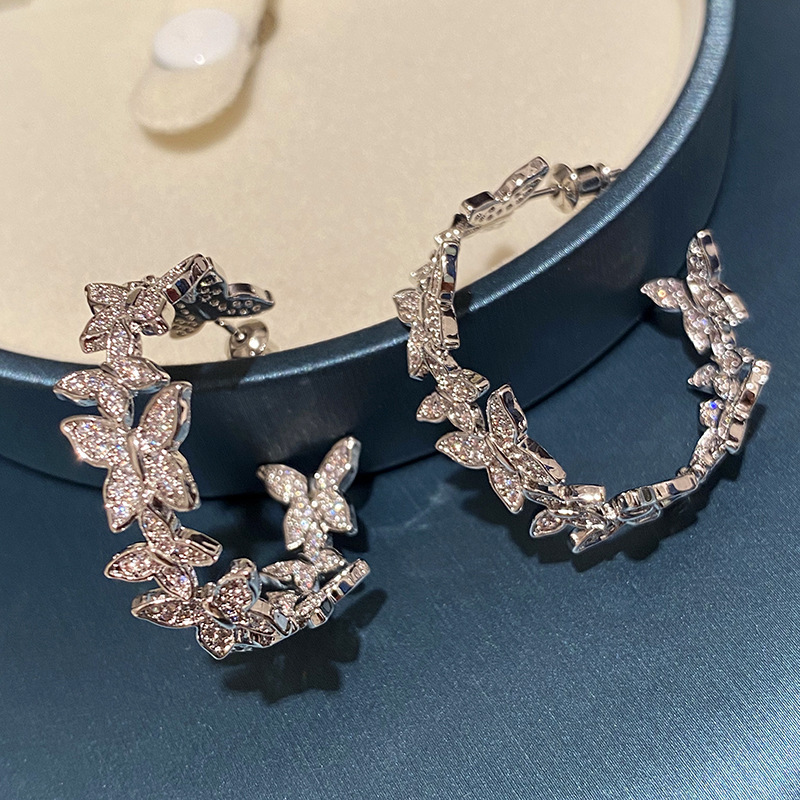 Butterfly full diamond temperament fashion earrings for women, elegant and sweet temperament jewelry, European and Korean hot style
