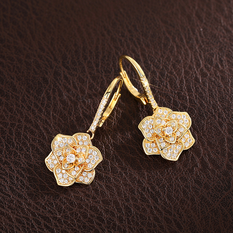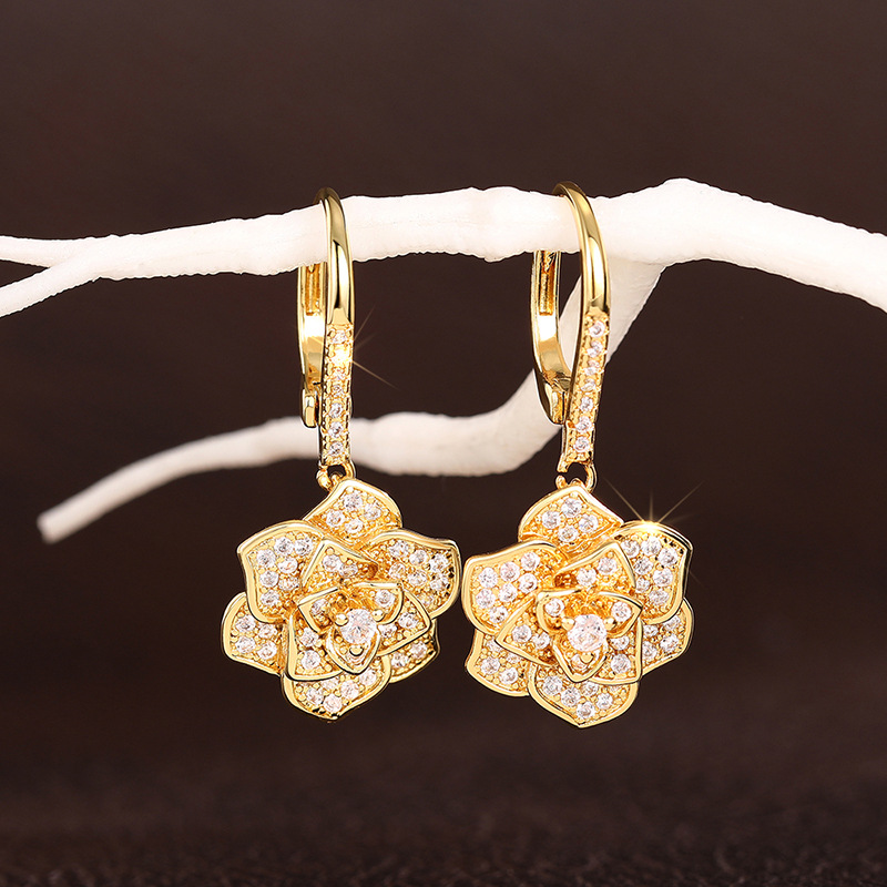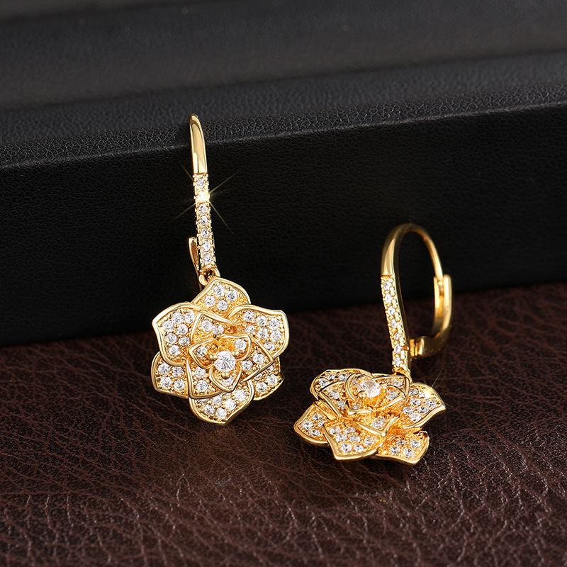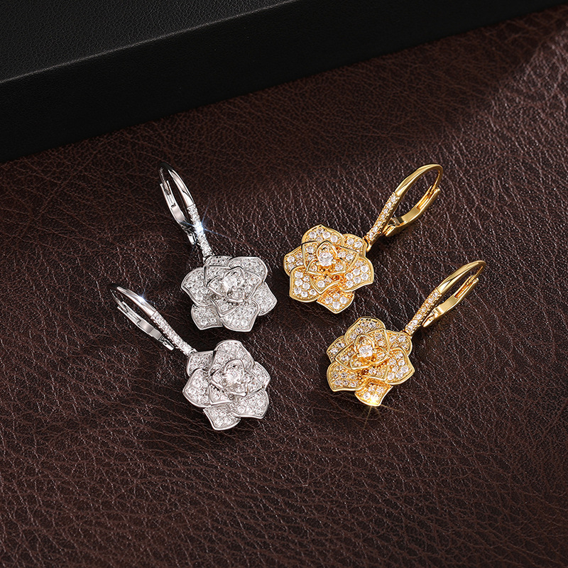 Camellia earrings with diamonds and zircon inlays, flower earrings, factory direct sales