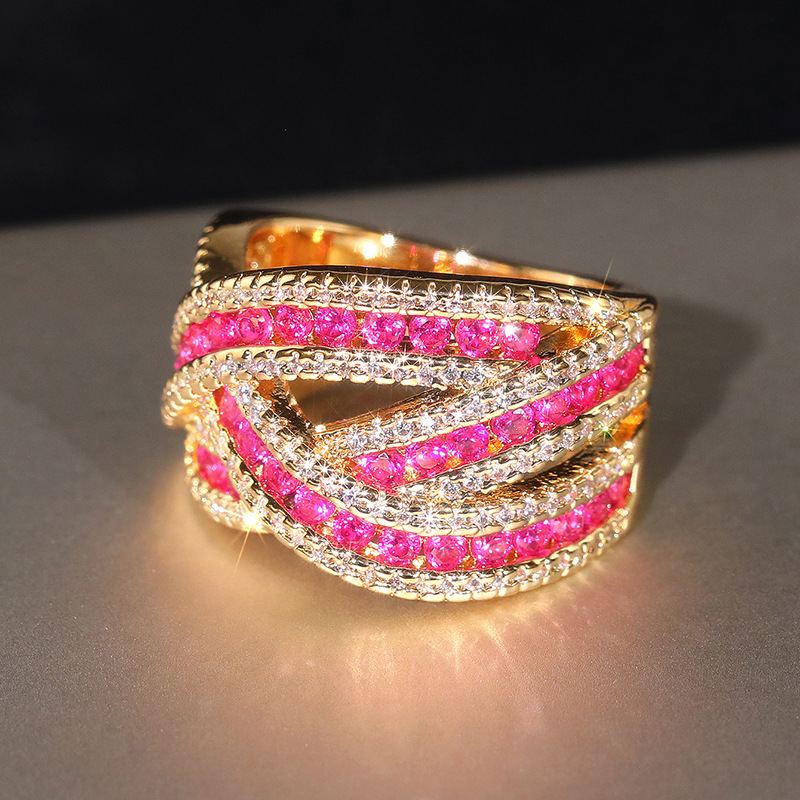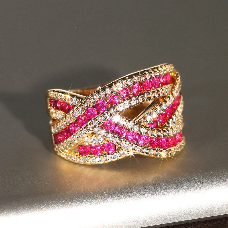 Classic four-claw imitation zircon micro-inlaid ring women's double row two-color twist arm ring engagement wedding ring women