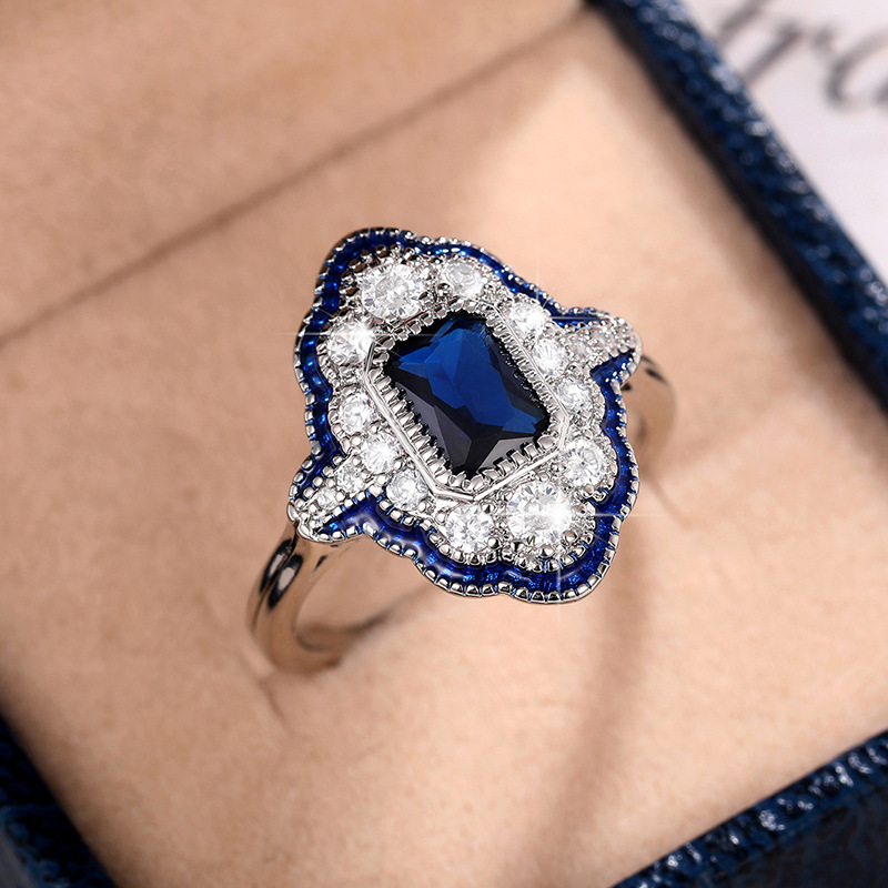Charming peacock blue ring with oil drop stroke design, ladies' ring with lace and hollow thin circle wholesale