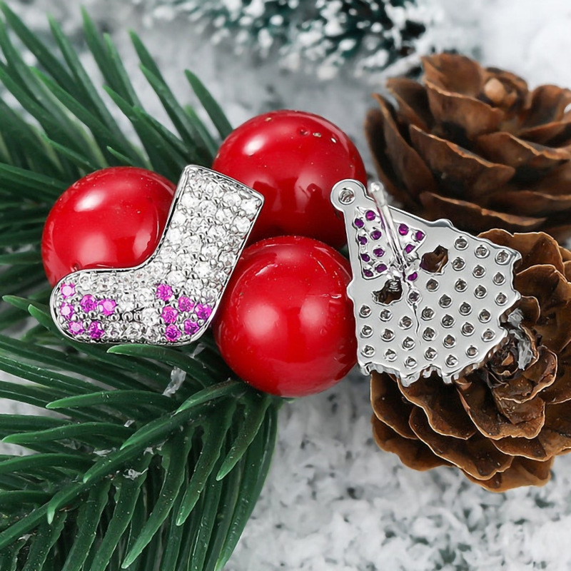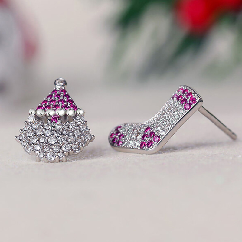Christmas festive atmosphere earrings asymmetrical cute earrings for women popular style micro-inlaid zircon jewelry