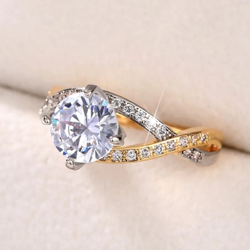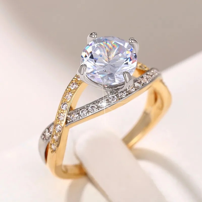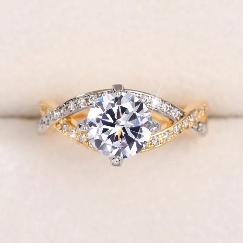 Classic four-claw imitation zircon micro-inlaid ring women's double row two-color twist arm ring engagement wedding ring women